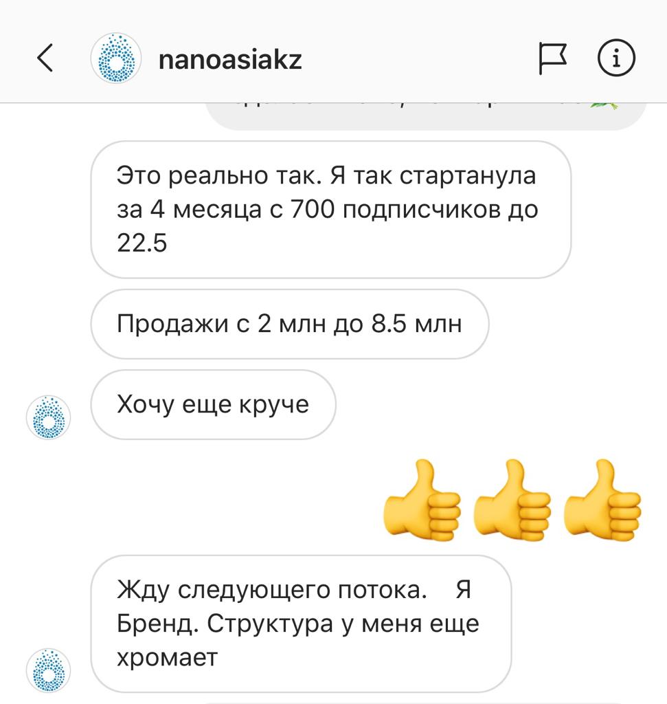 В результате прохождения программы я получила даже больше, чем ожидала. Завершение программы совпало с началом карантина и тут началось самое интересное. Всё реально попёрло. Заказы каждый день, причем, по всему Казахстану. Получаю обратную связь от знакомых и клиентов по поводу аккаунта, что очень интересный и нравится. Я кайфую от ведения инстаграма и хочу в этом развиваться дальше.