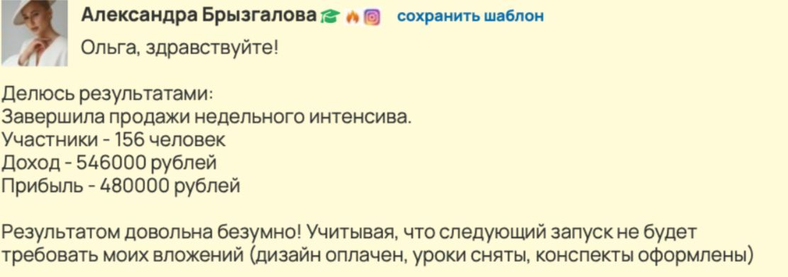 Я ждала точные инструкции и знания по автоматизации без воды. Мне нужен был простой и понятный, рецепт, как готовить контент, чтобы он продавал. Все получила!»