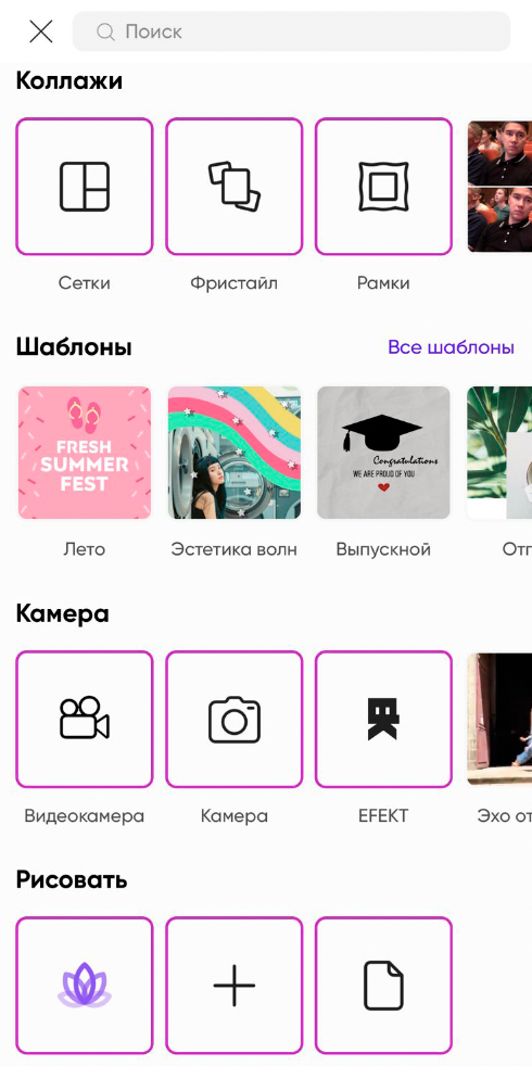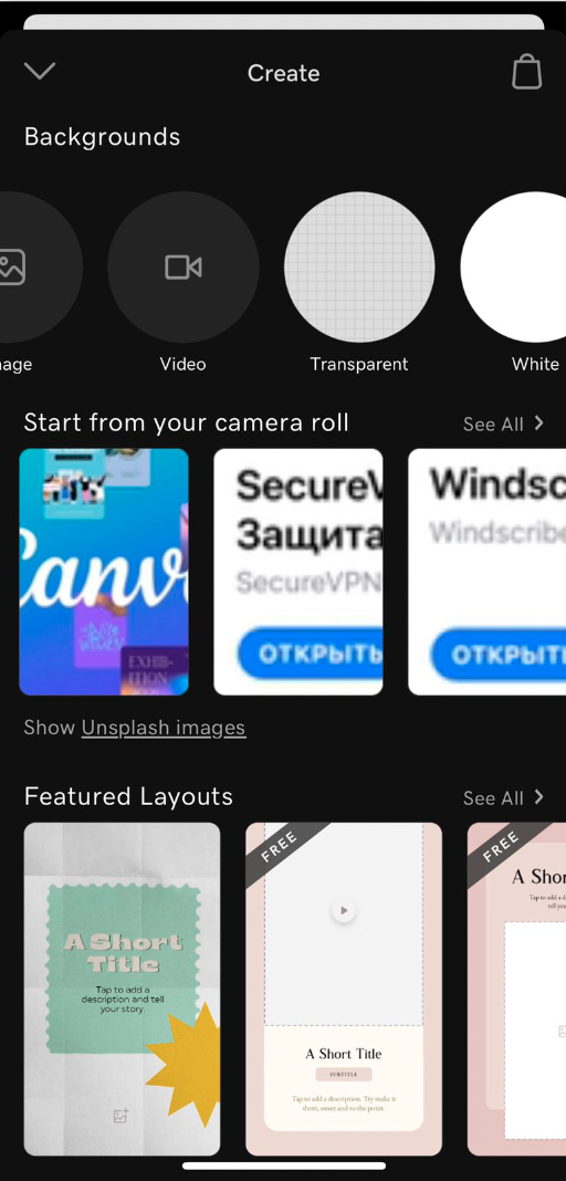 Большим плюсом Canva был встроенный в ее функционал фотобанк Unsplash, который дает возможность бесплатно использовать изображения в своих проектах. Вы также можете воспользоваться фотобанками, загрузив скачанные изображения в любой понравившийся редактор.