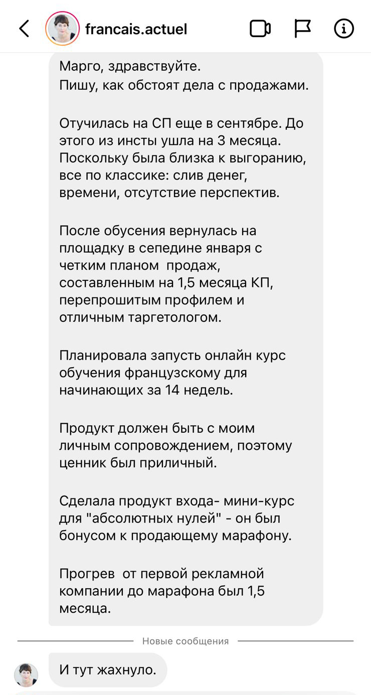 Помимо инсты мы продаем в телеге и через рассылку уже около года и эти каналы дают в среднем 40% выручки. При самом плохом сценарии с закрытием инсты я уверен, что там показатели вырастут. Поэтому улыбаемся и пашем в удовольствие.