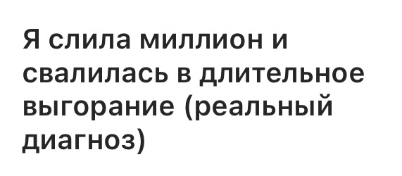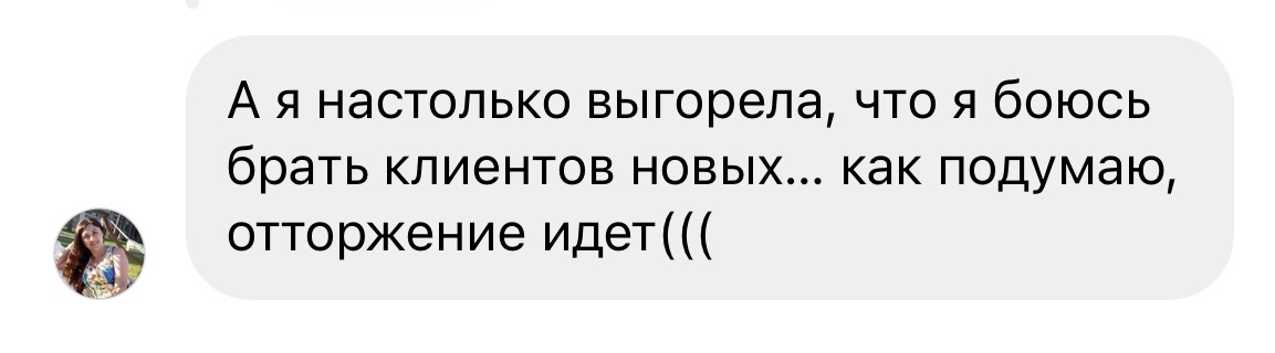 Отсутствие понимания, как развивать проект. Синдром самозванца. Дикая усталость на грани выгорания. Разрывалась между консультациями и онлайном.