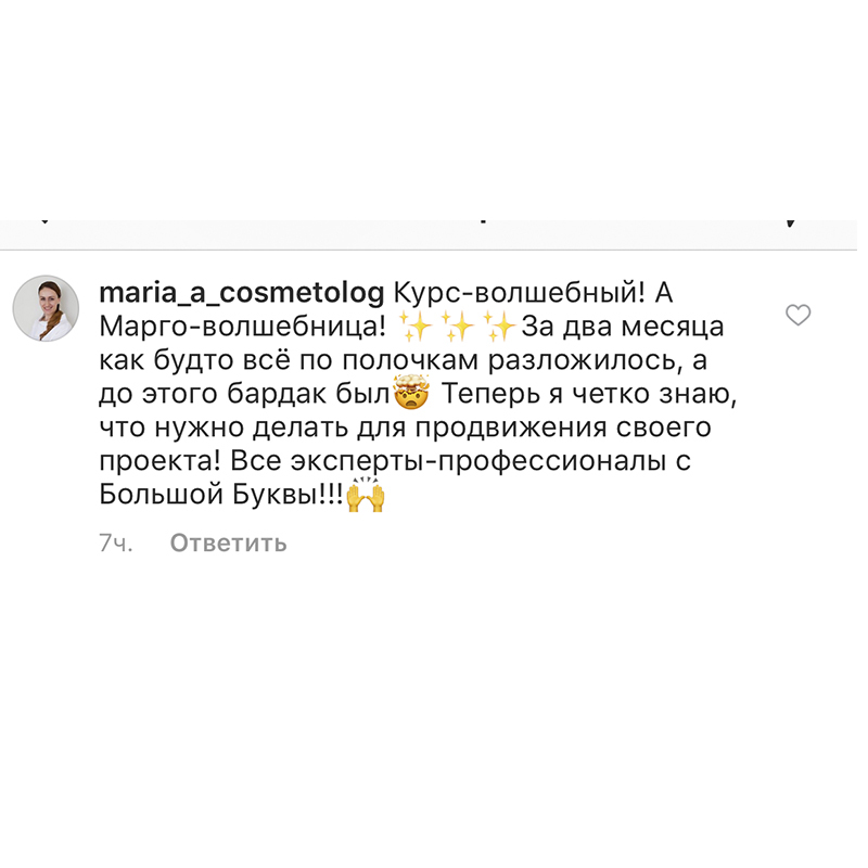 На старте проекта у меня было много сомнений и страхов, были страхи критики, страхи конкуренции, но сейчас даже не думаю об этом, потому что тупо некогда и конкуренция в моем понимании уже имеет совсем другое значение. Я планирую прийти на курс голос в ближайшее время, хочу пройти именно у вас.