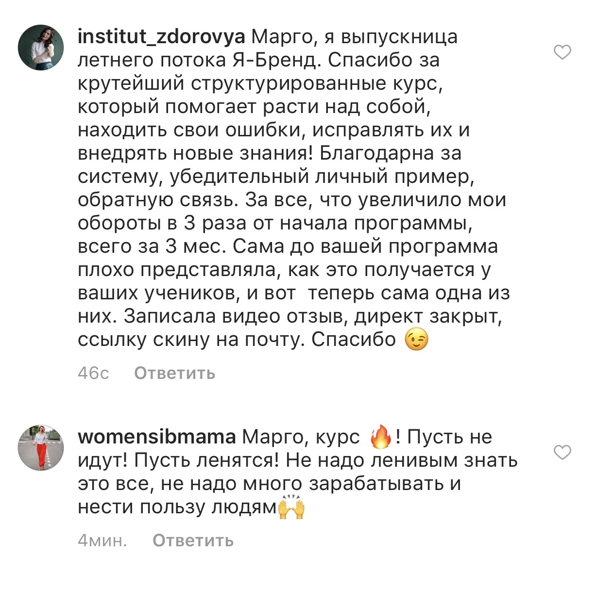 Стоимость тренинга я уже окупила за первую неделю примерно, как начала учиться, если я правильно помню, то училаст в 15м потоке.