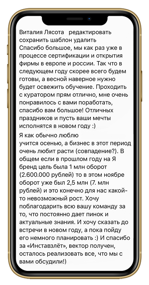 Внедрять новые знания Виталия начала с первых дней обучения, и результаты стали видны уже в процессе. А финал "Я-Бренда" совпал с черной пятницей в ноябре 2018-го. При стандартной отправке 500-600 заказов в месяц в том ноябре девушки обработали более 1000.
