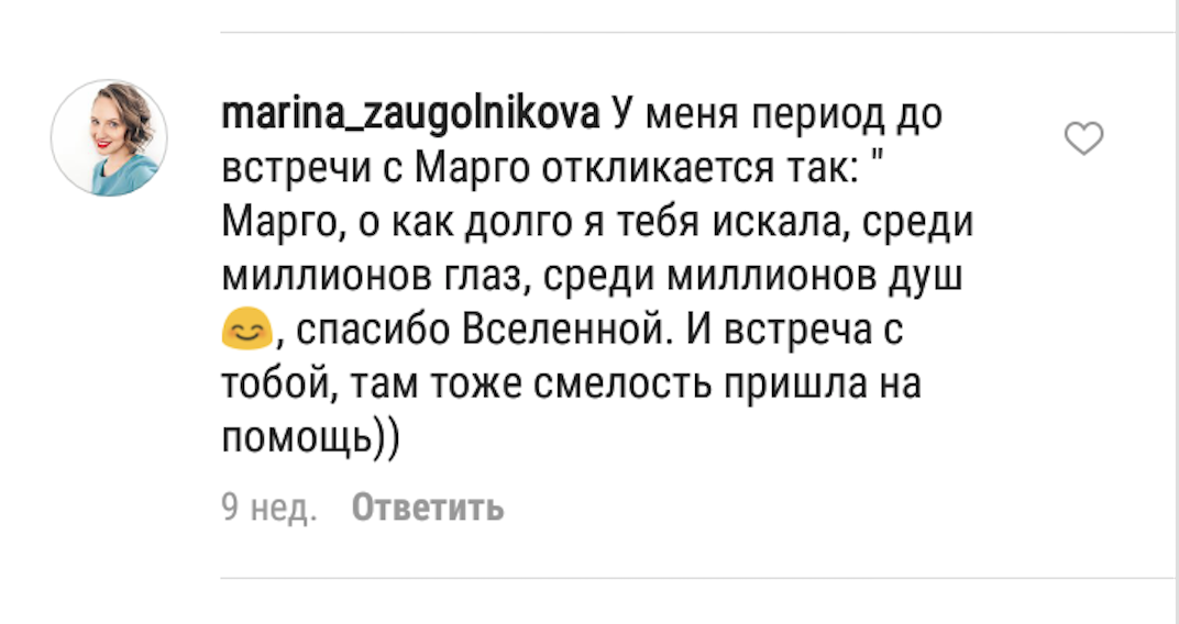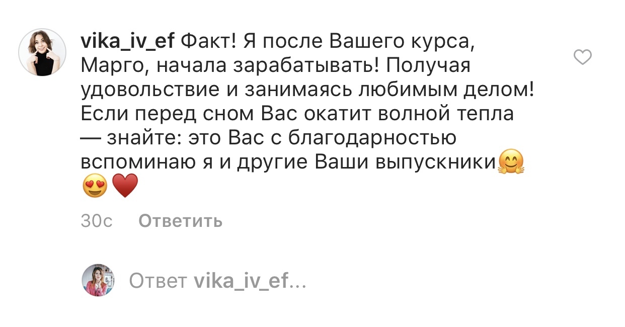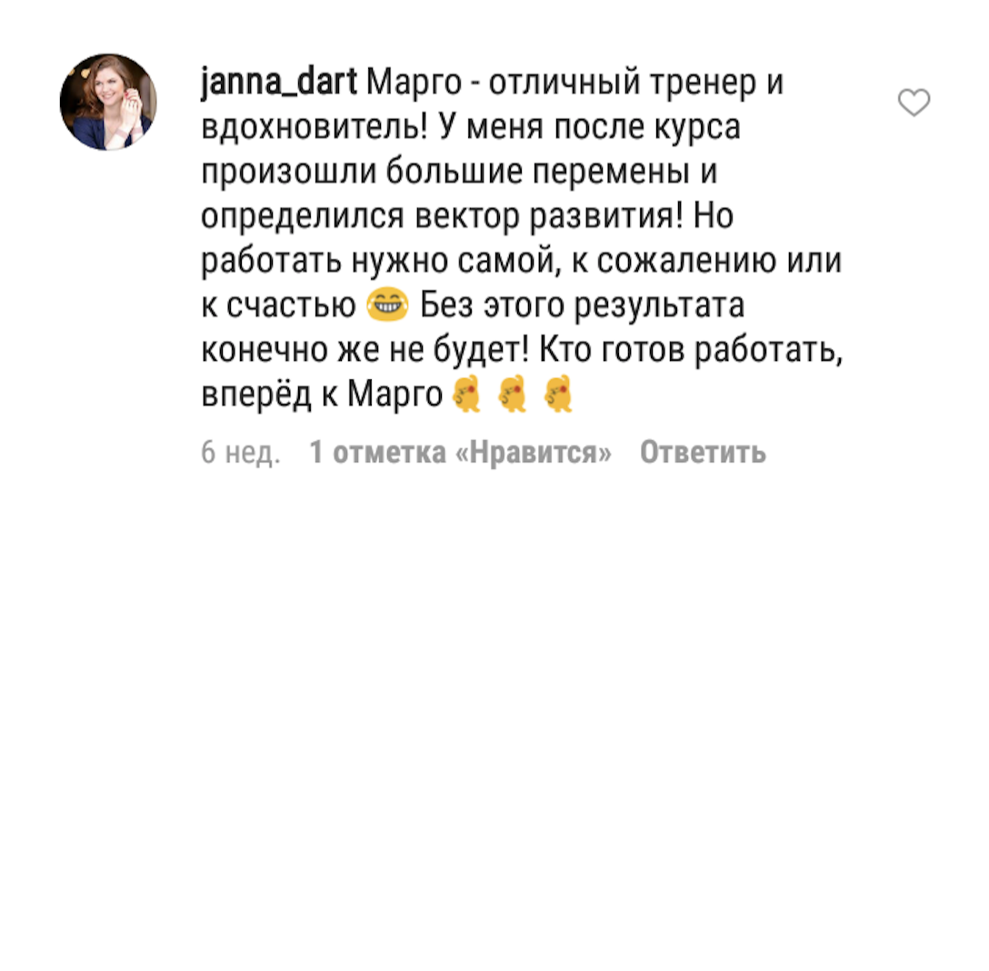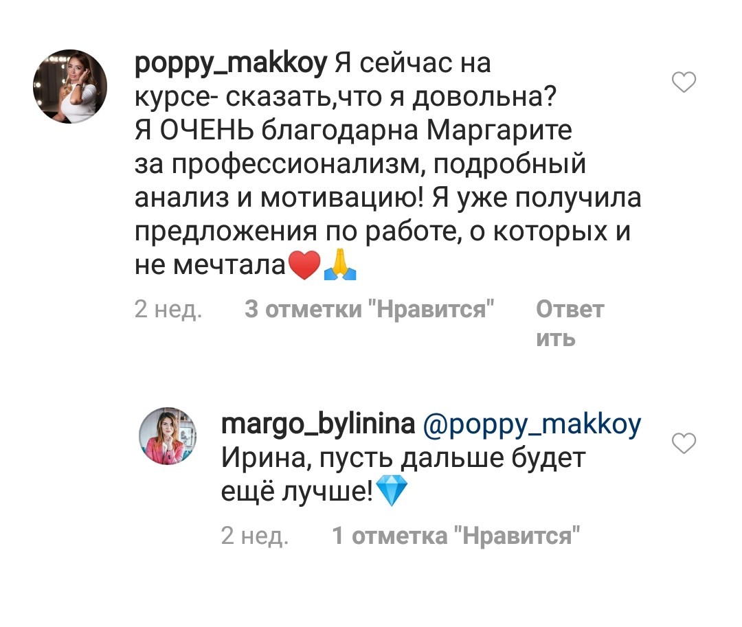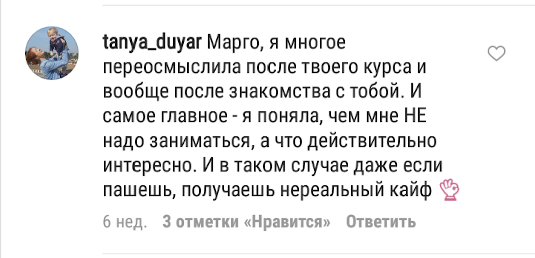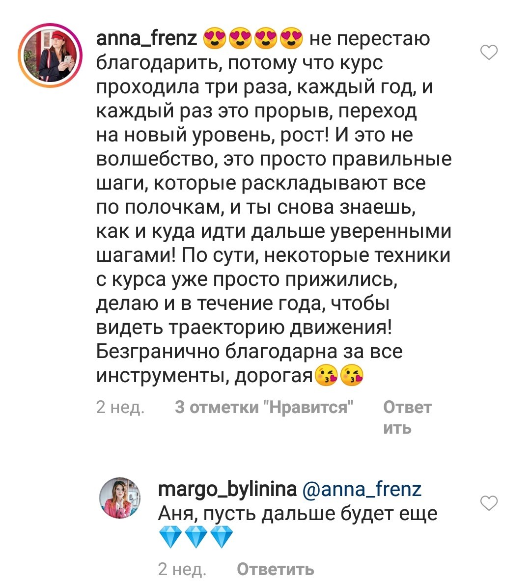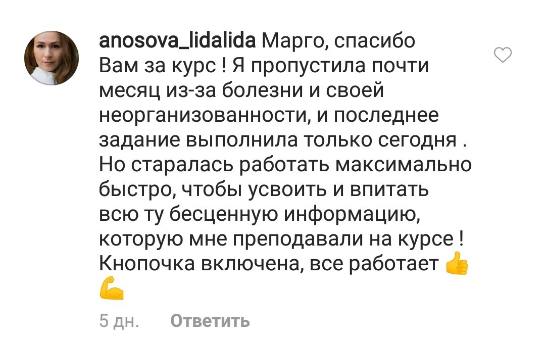 Спасибо Марго за этот курс! Марго помогла раскрыть мне себя.
