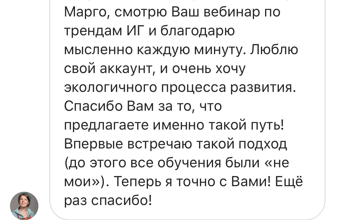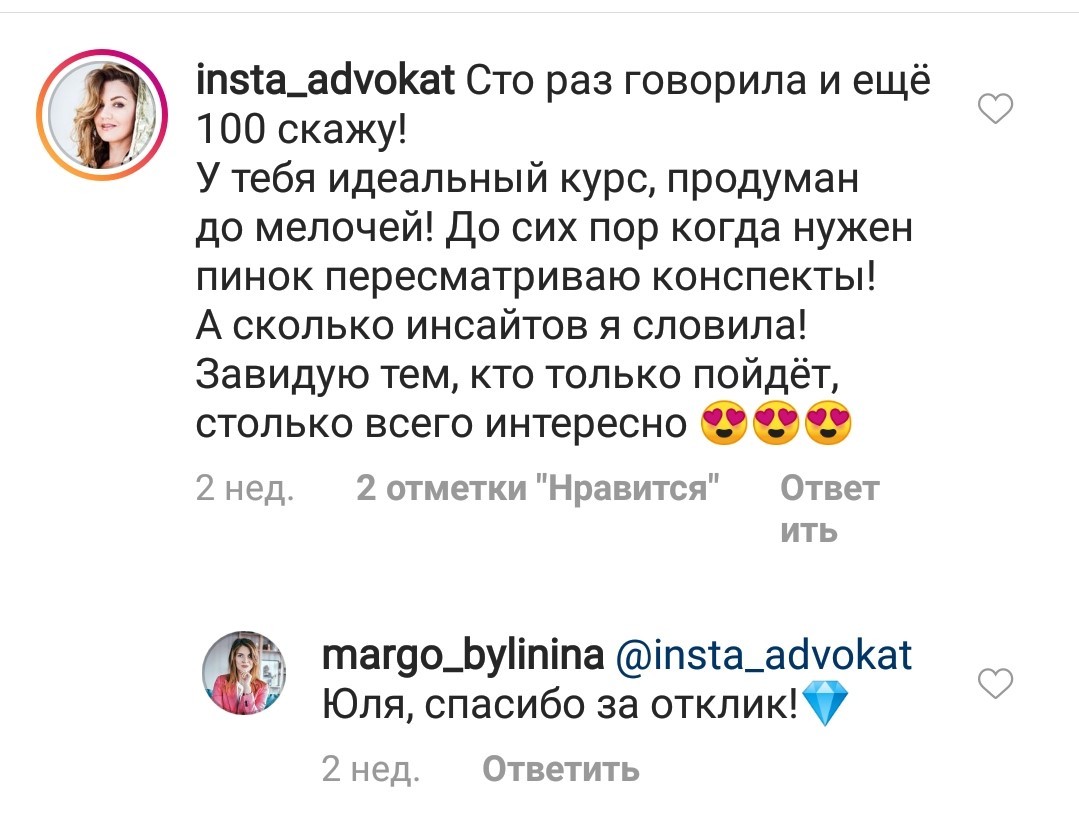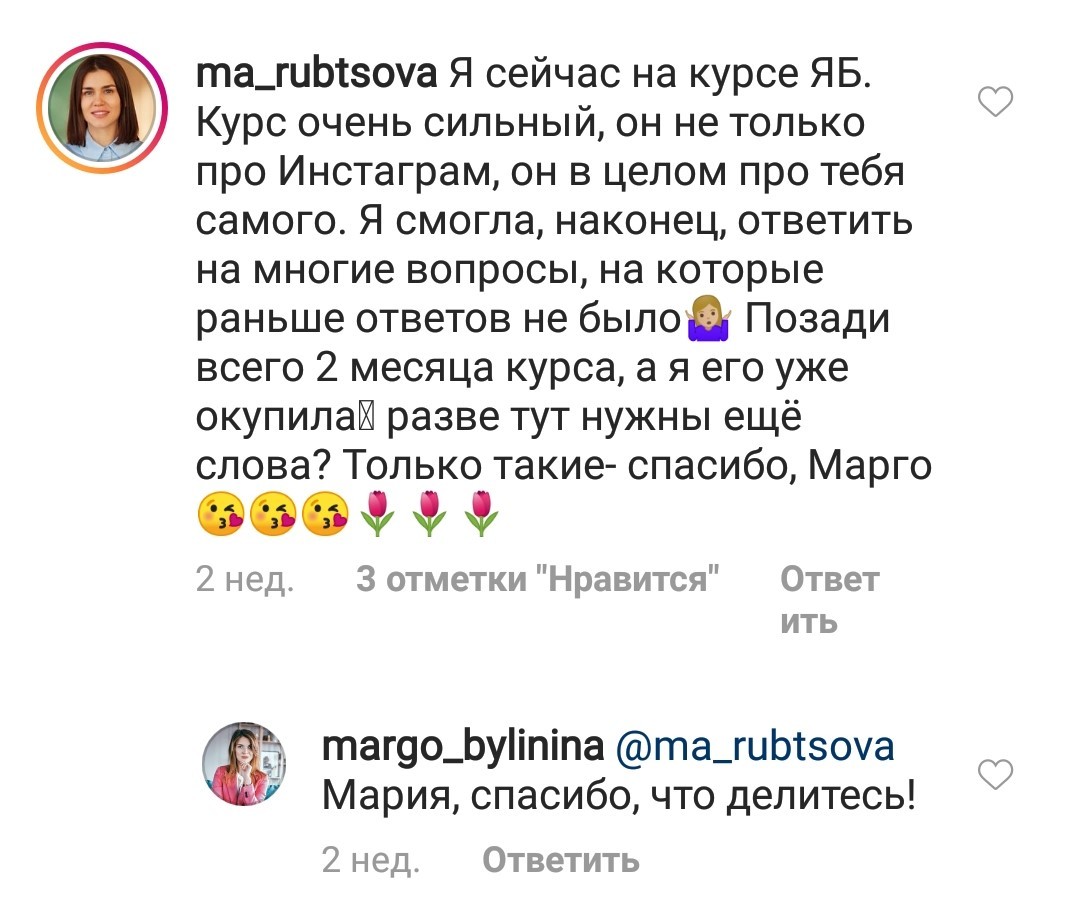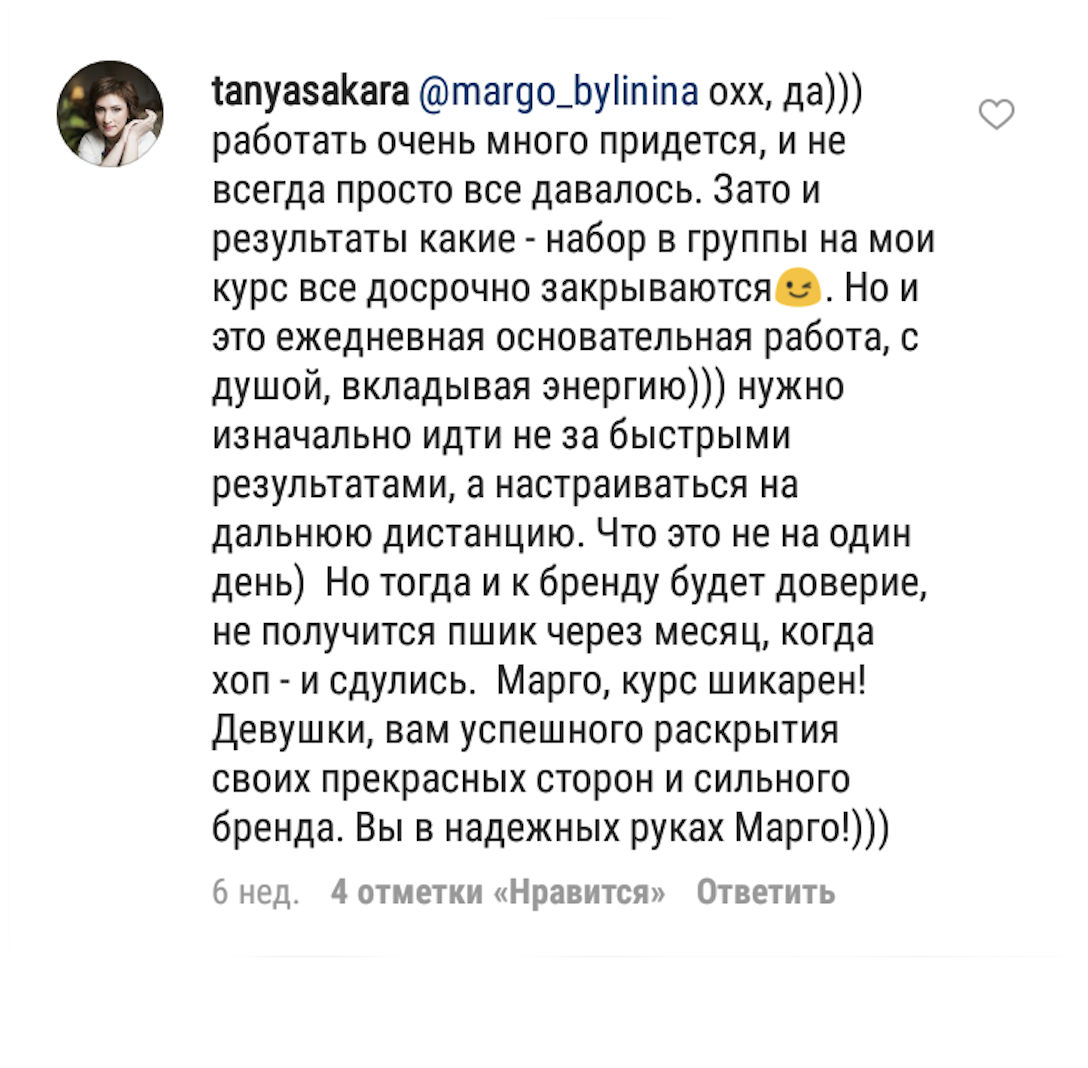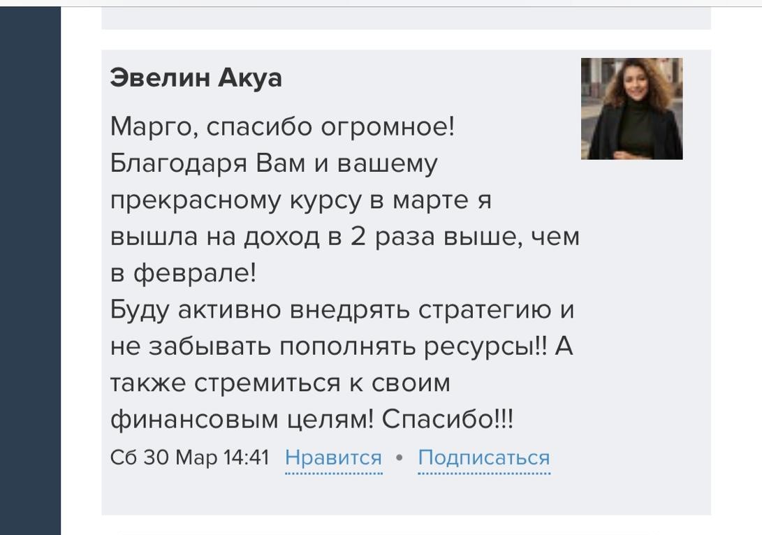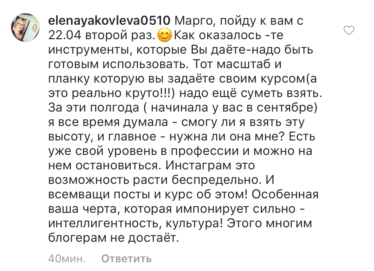 Спасибо Марго за этот курс! Марго помогла раскрыть мне себя.
