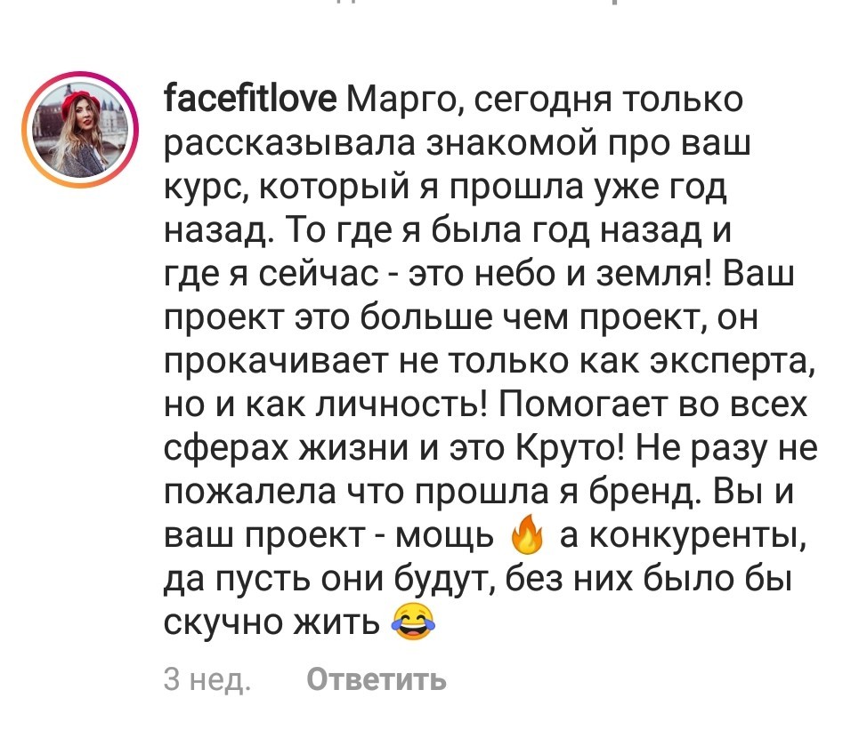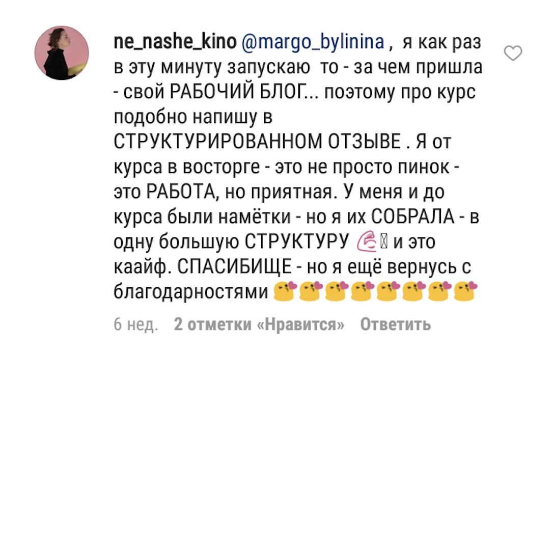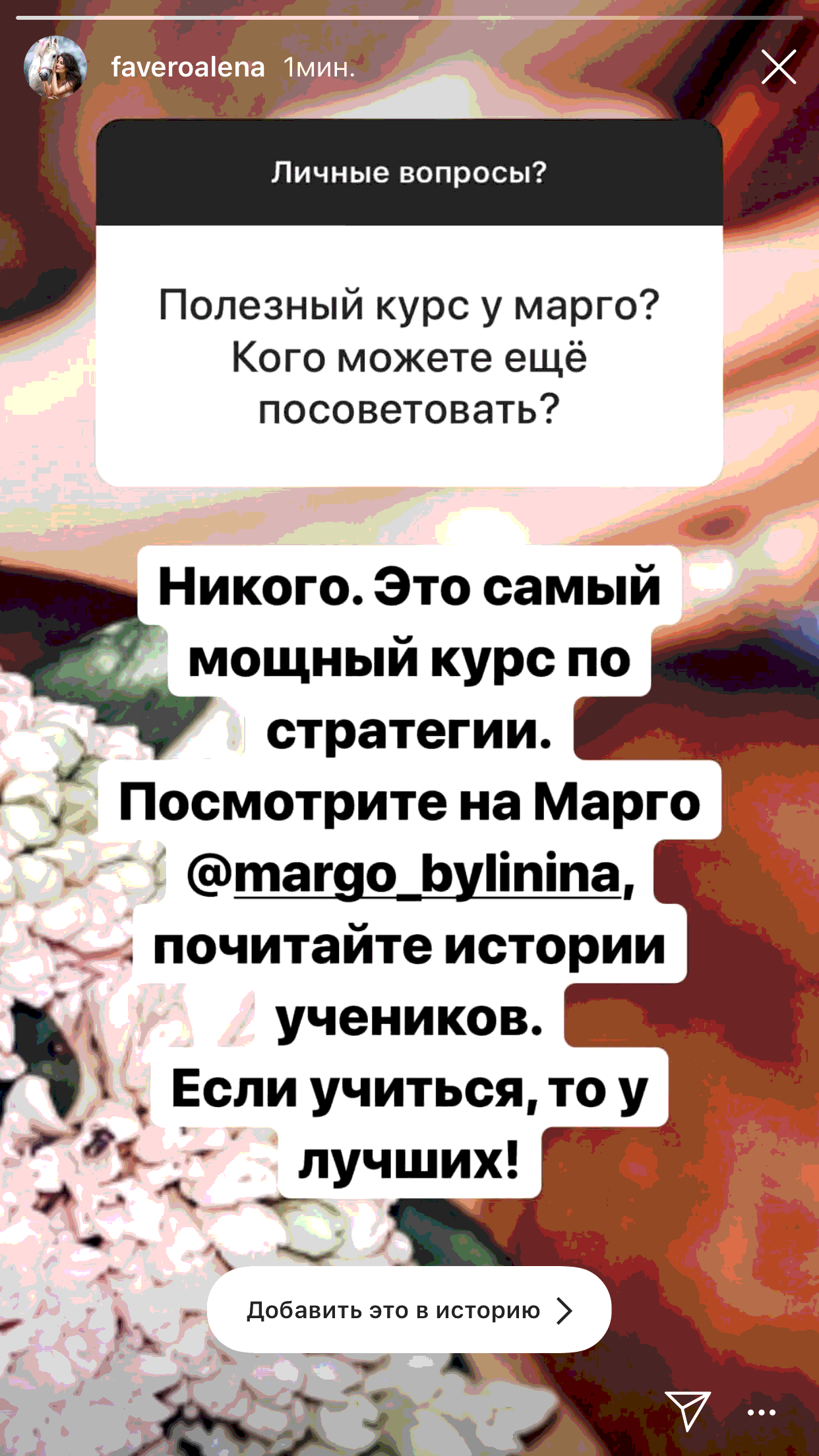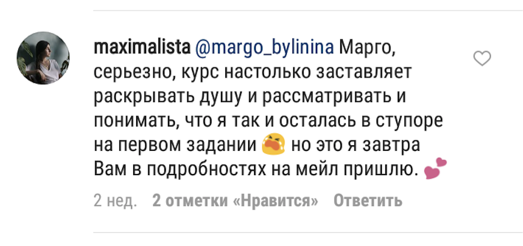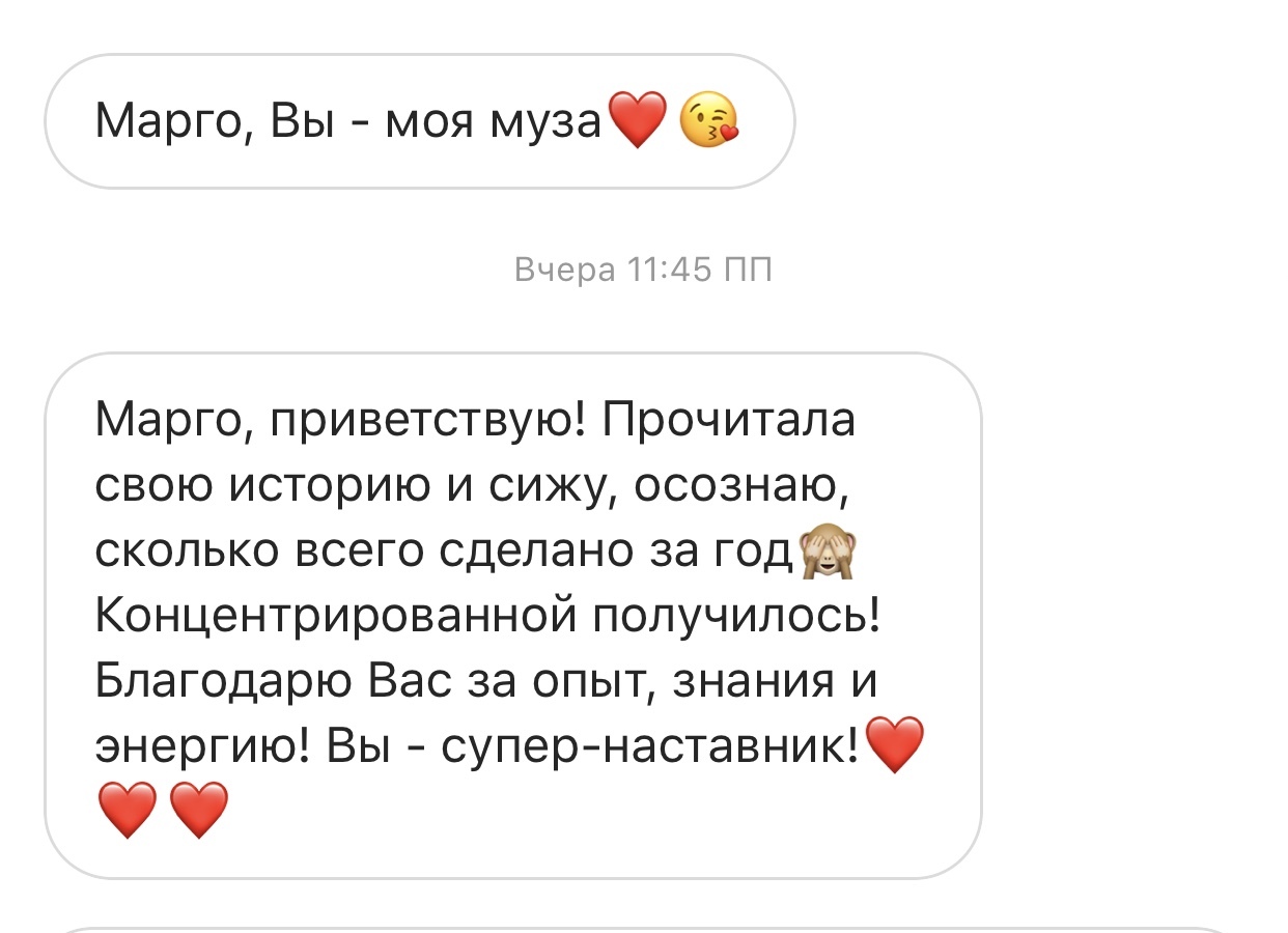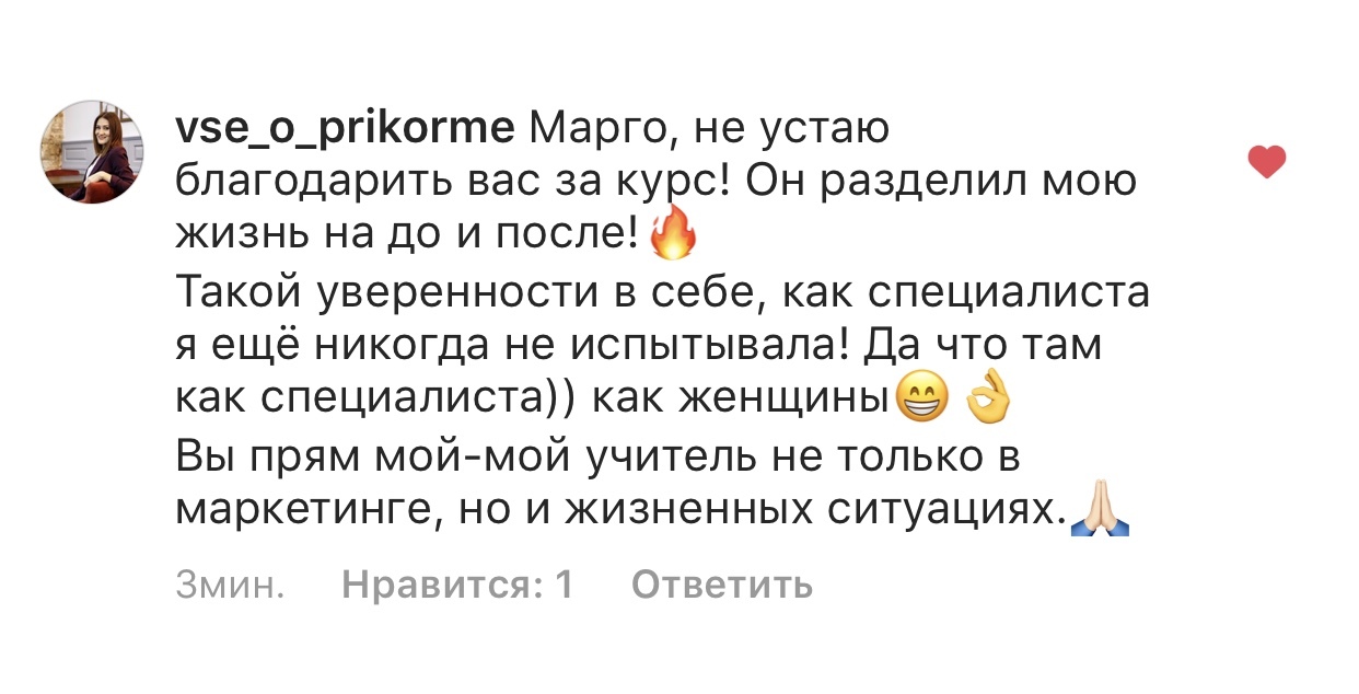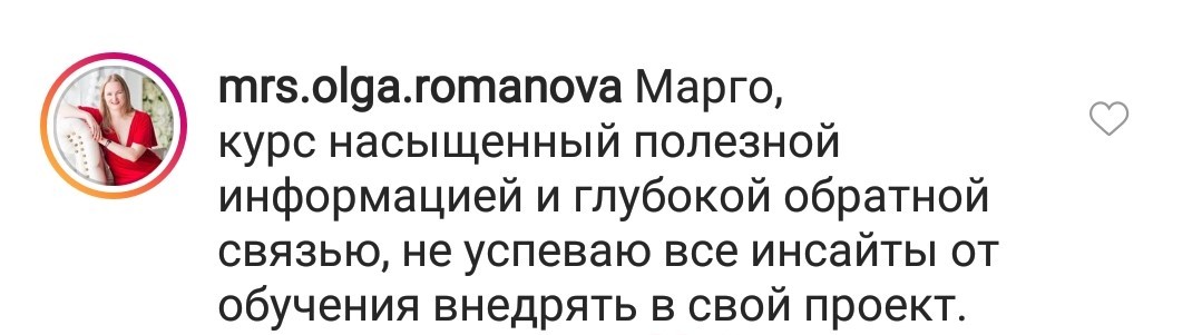 Спасибо Марго за этот курс! Марго помогла раскрыть мне себя.