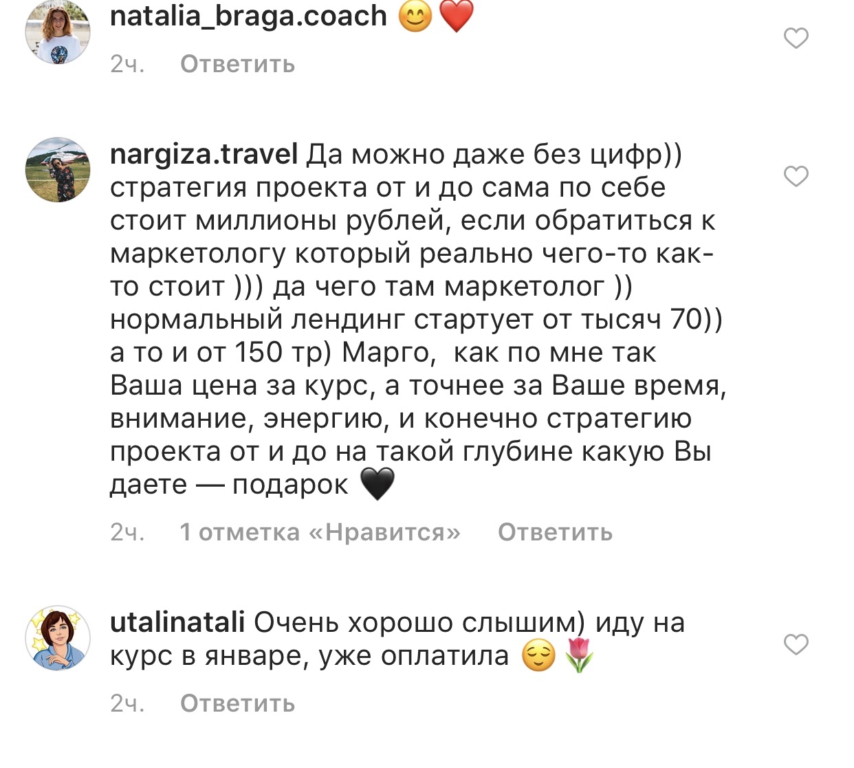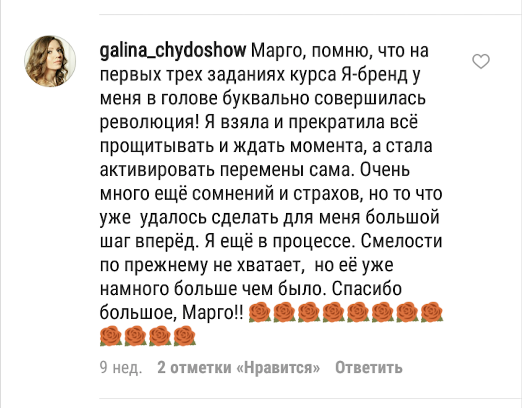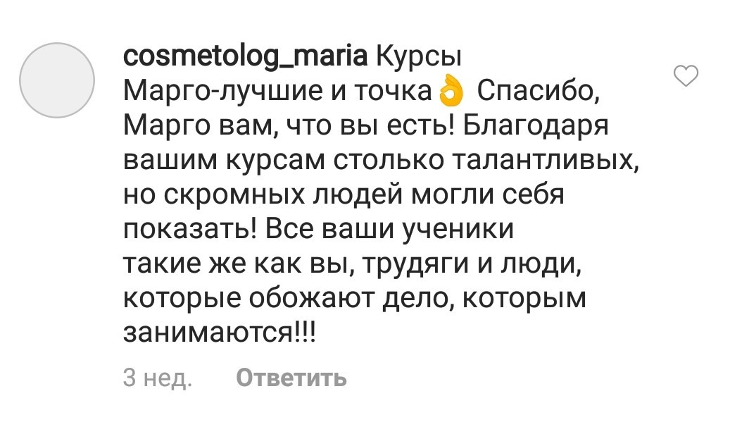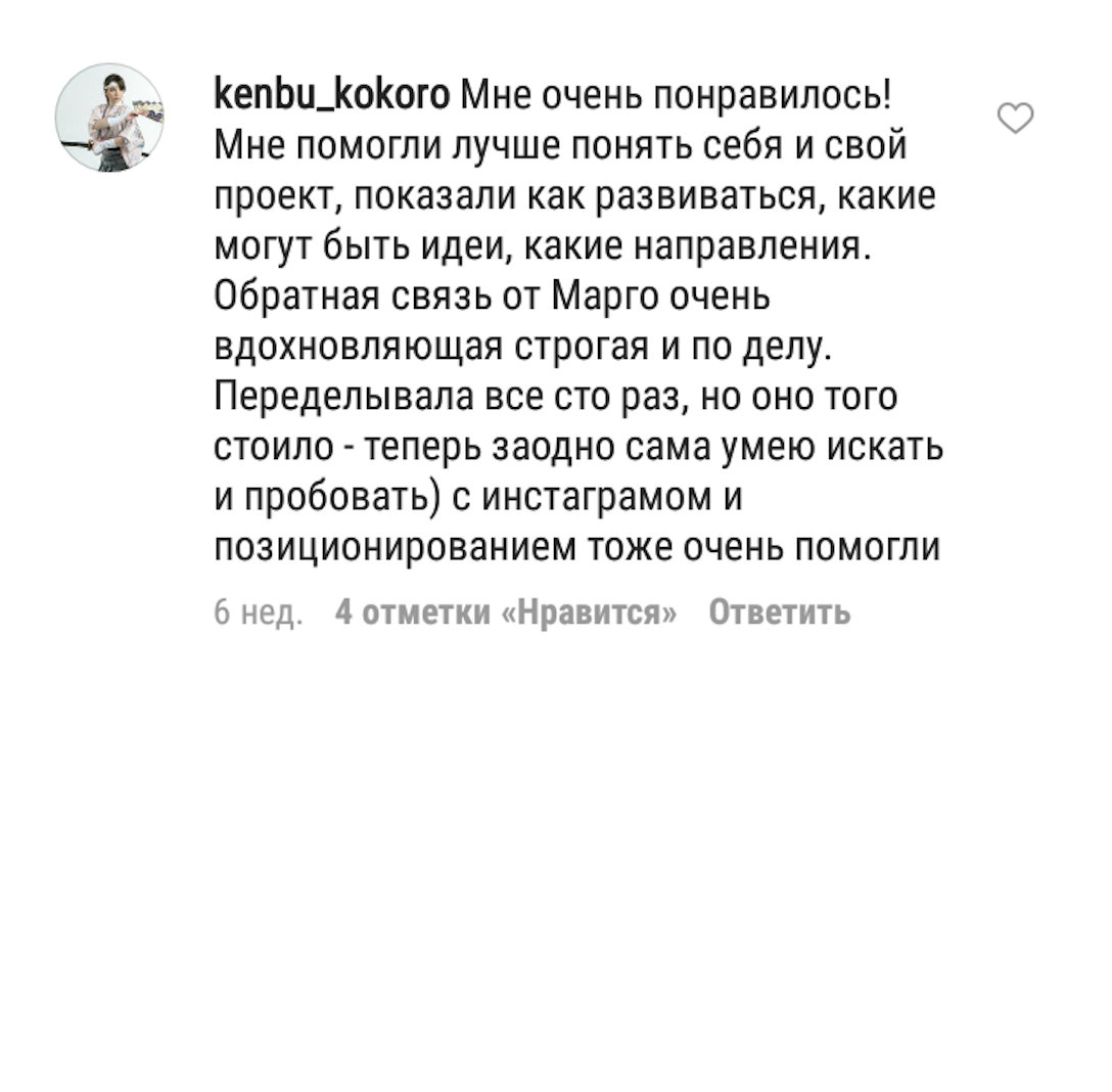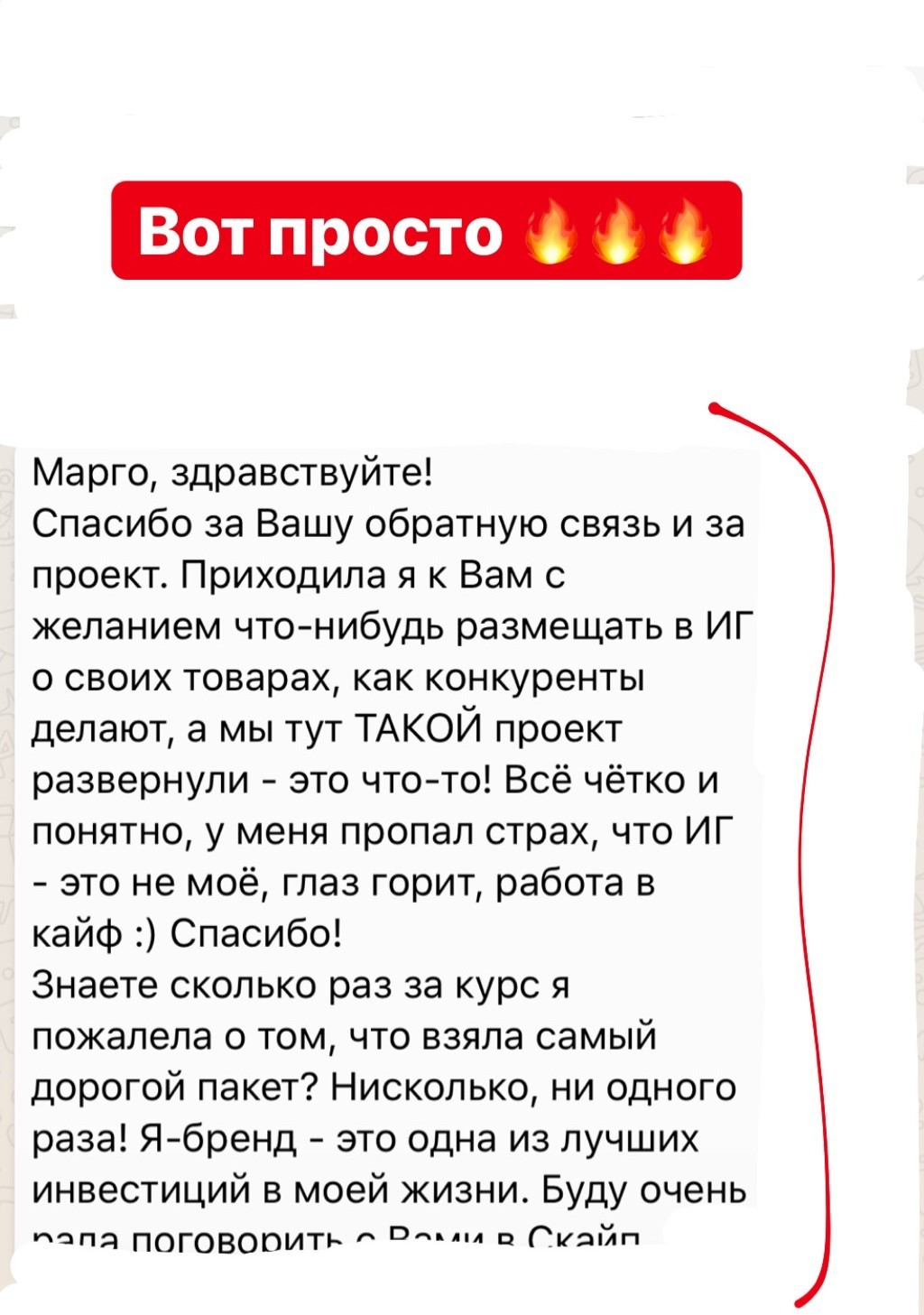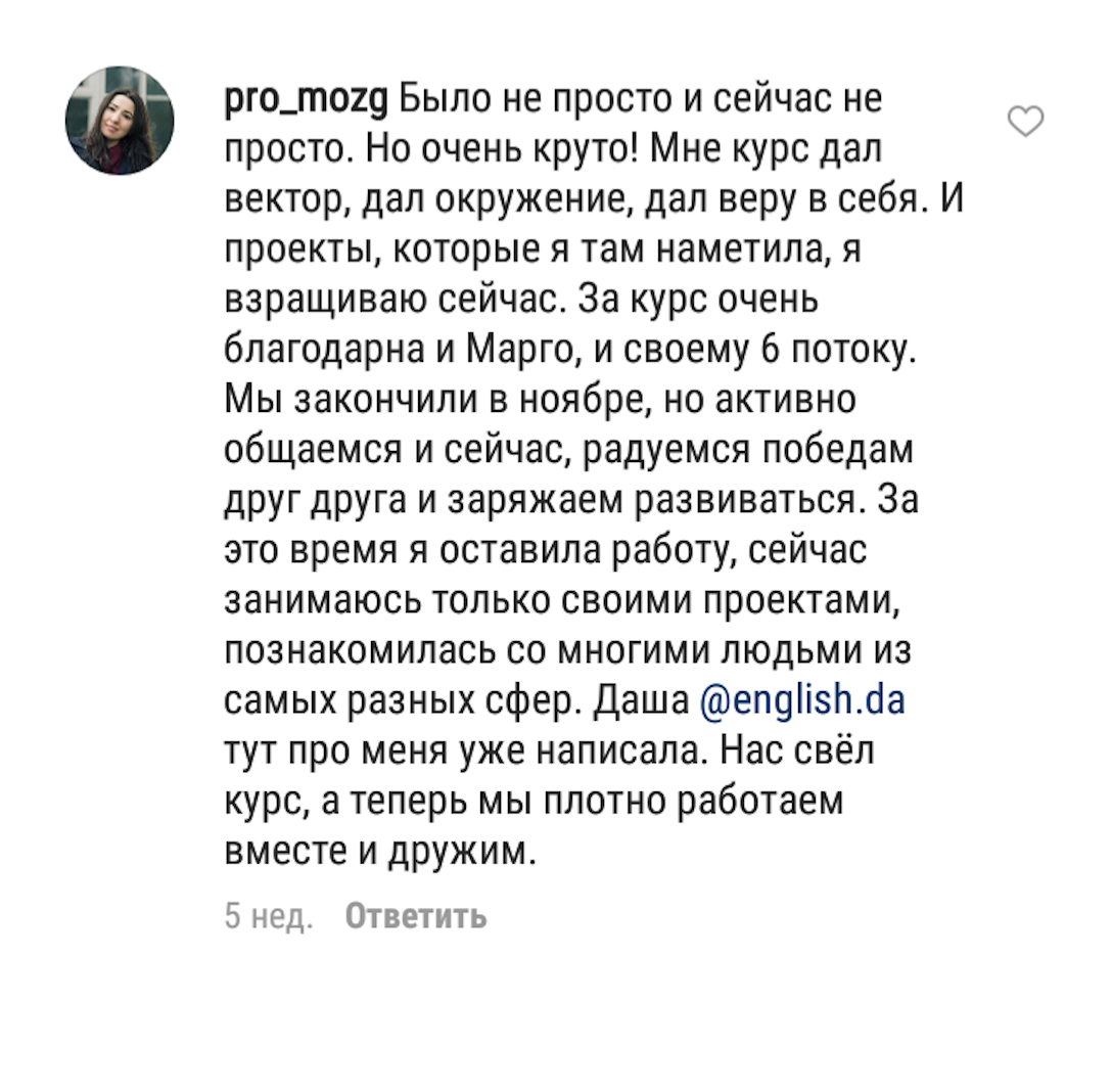 Спасибо Марго за этот курс! Марго помогла раскрыть мне себя.