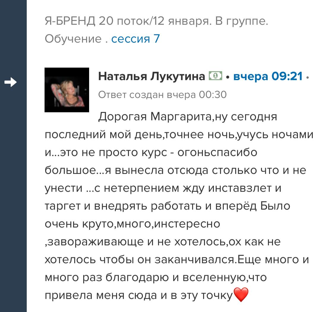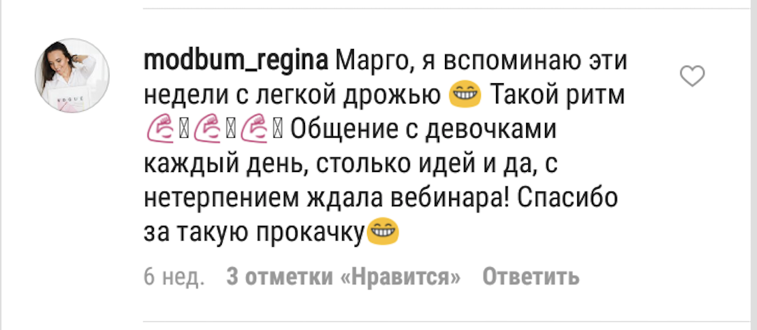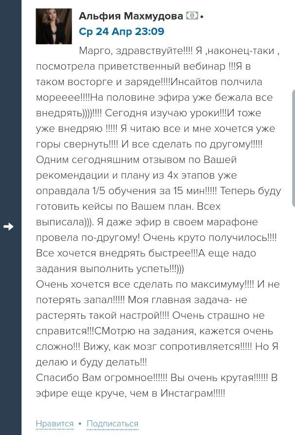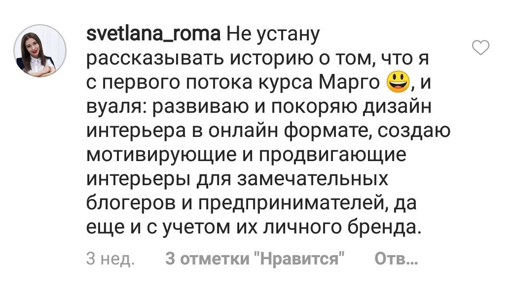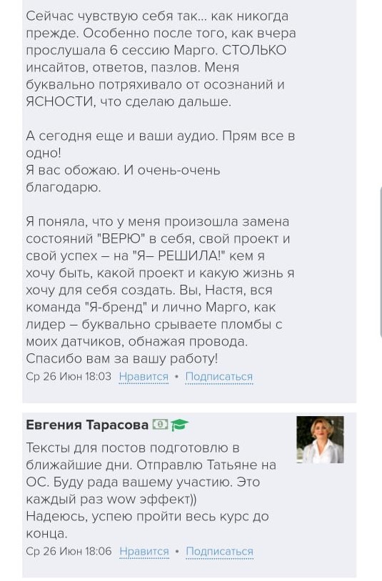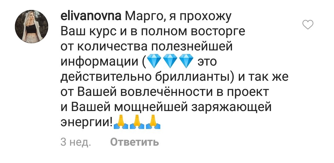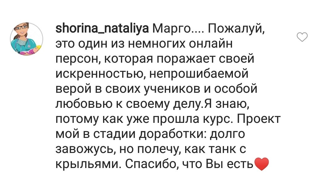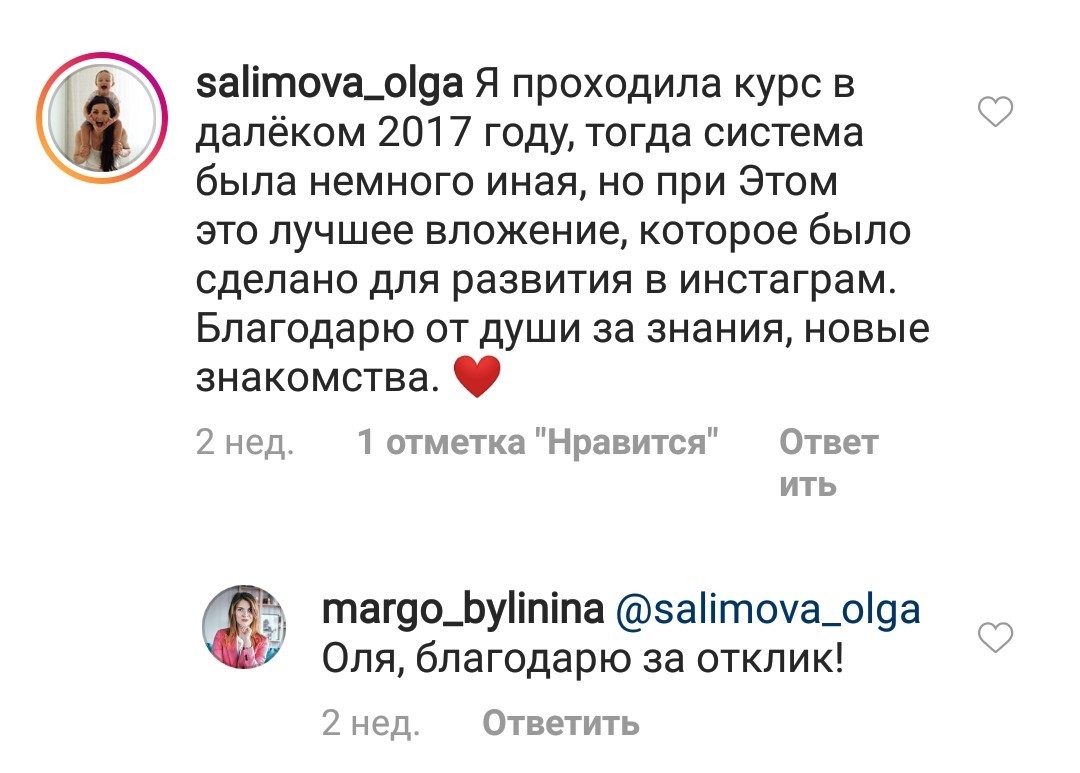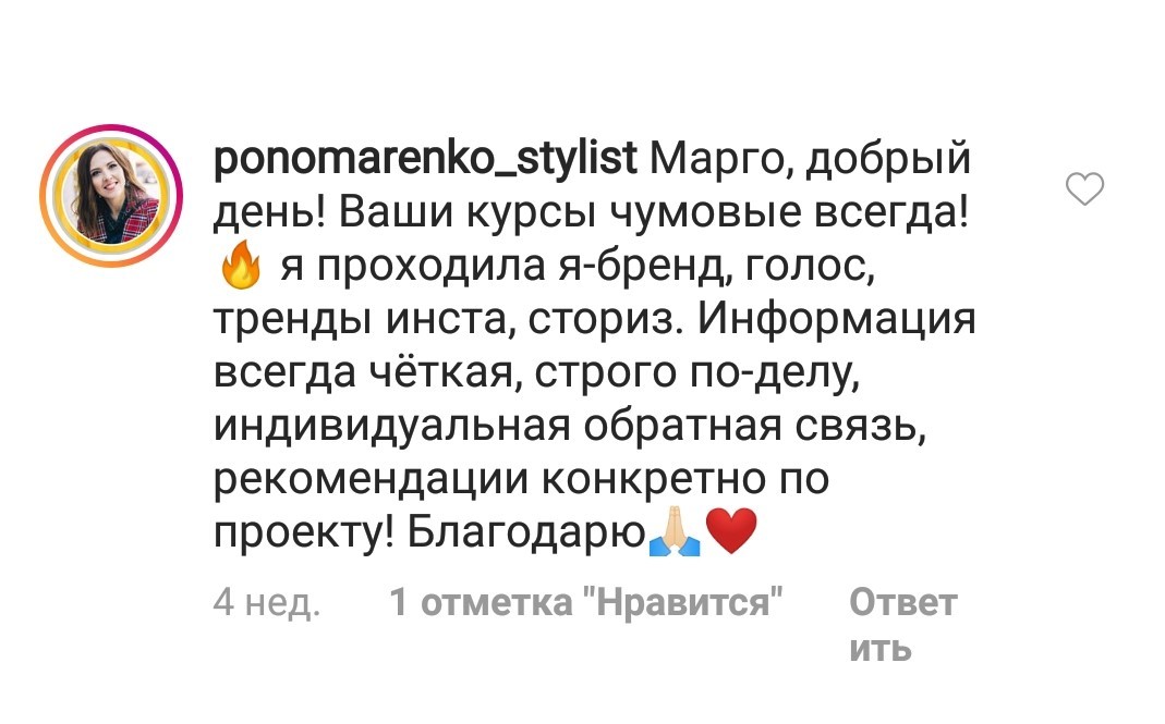 Спасибо Марго за этот курс! Марго помогла раскрыть мне себя.