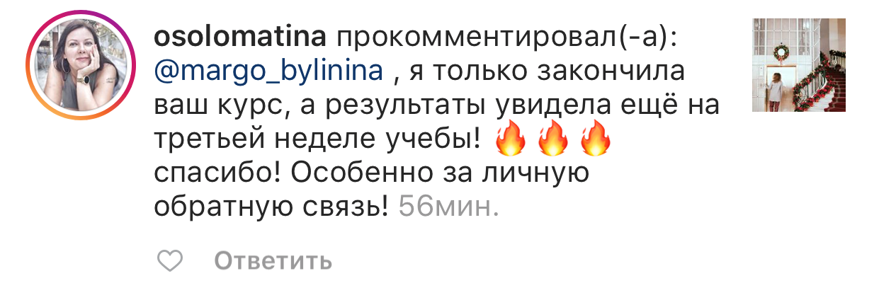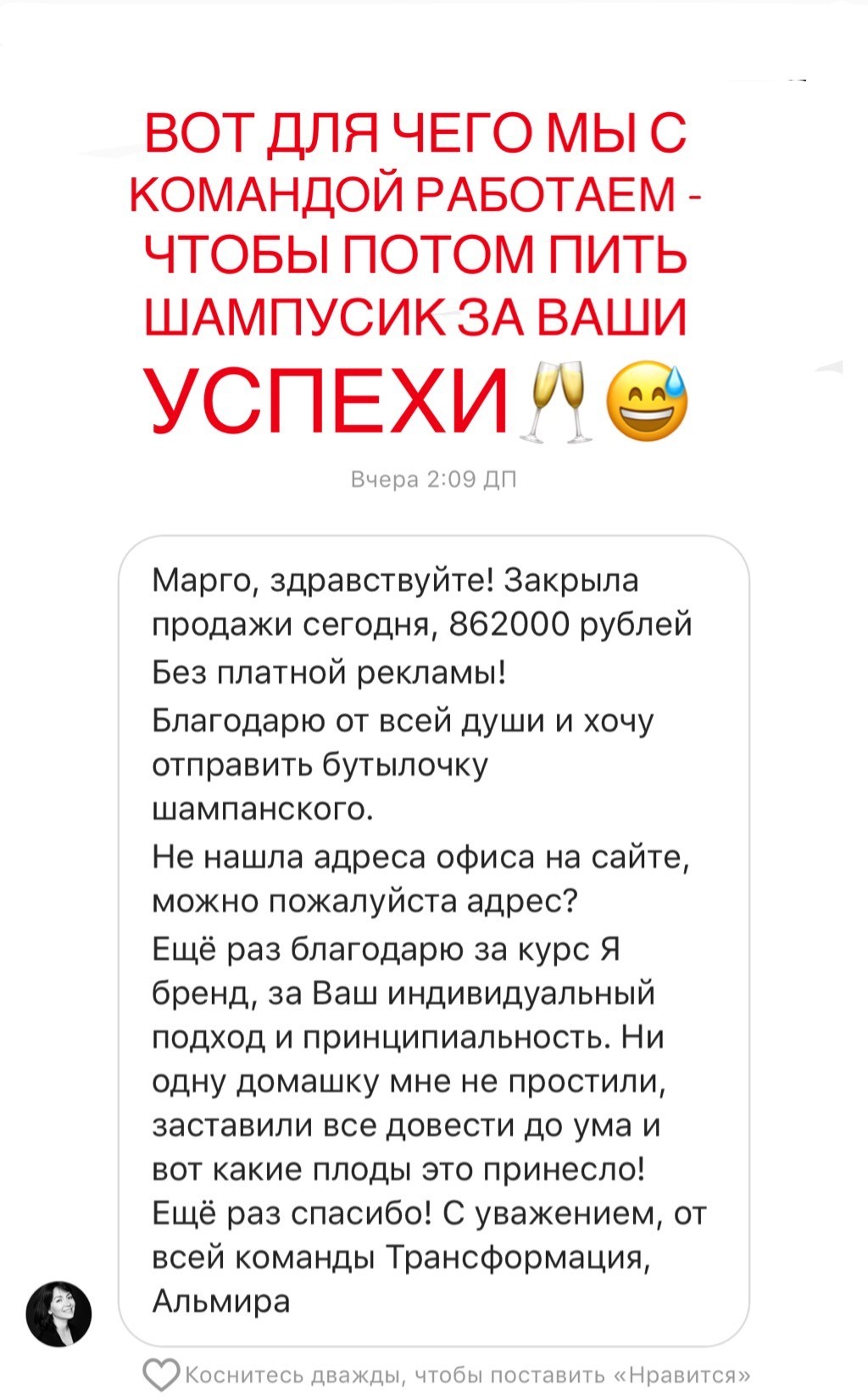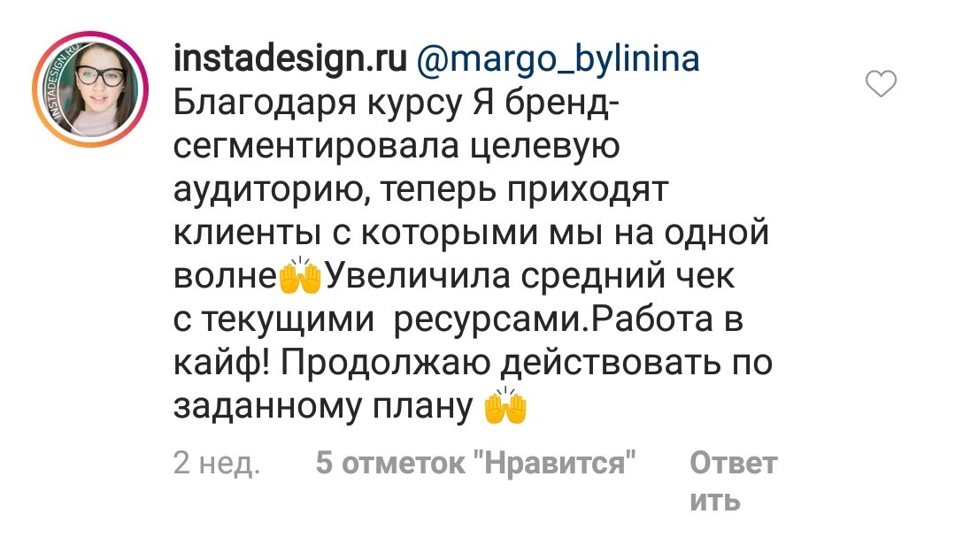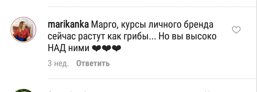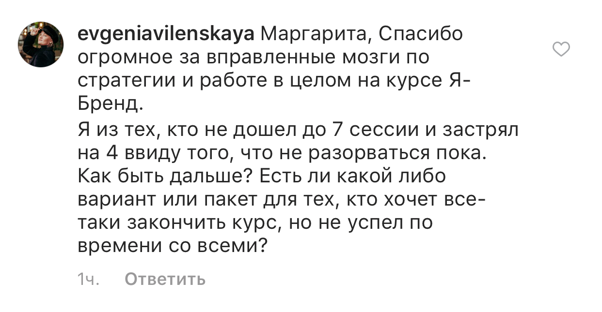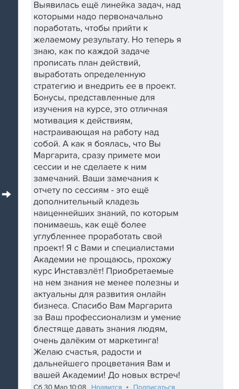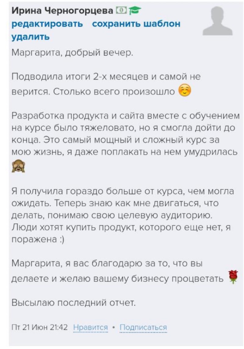 Спасибо Марго за этот курс! Марго помогла раскрыть мне себя.