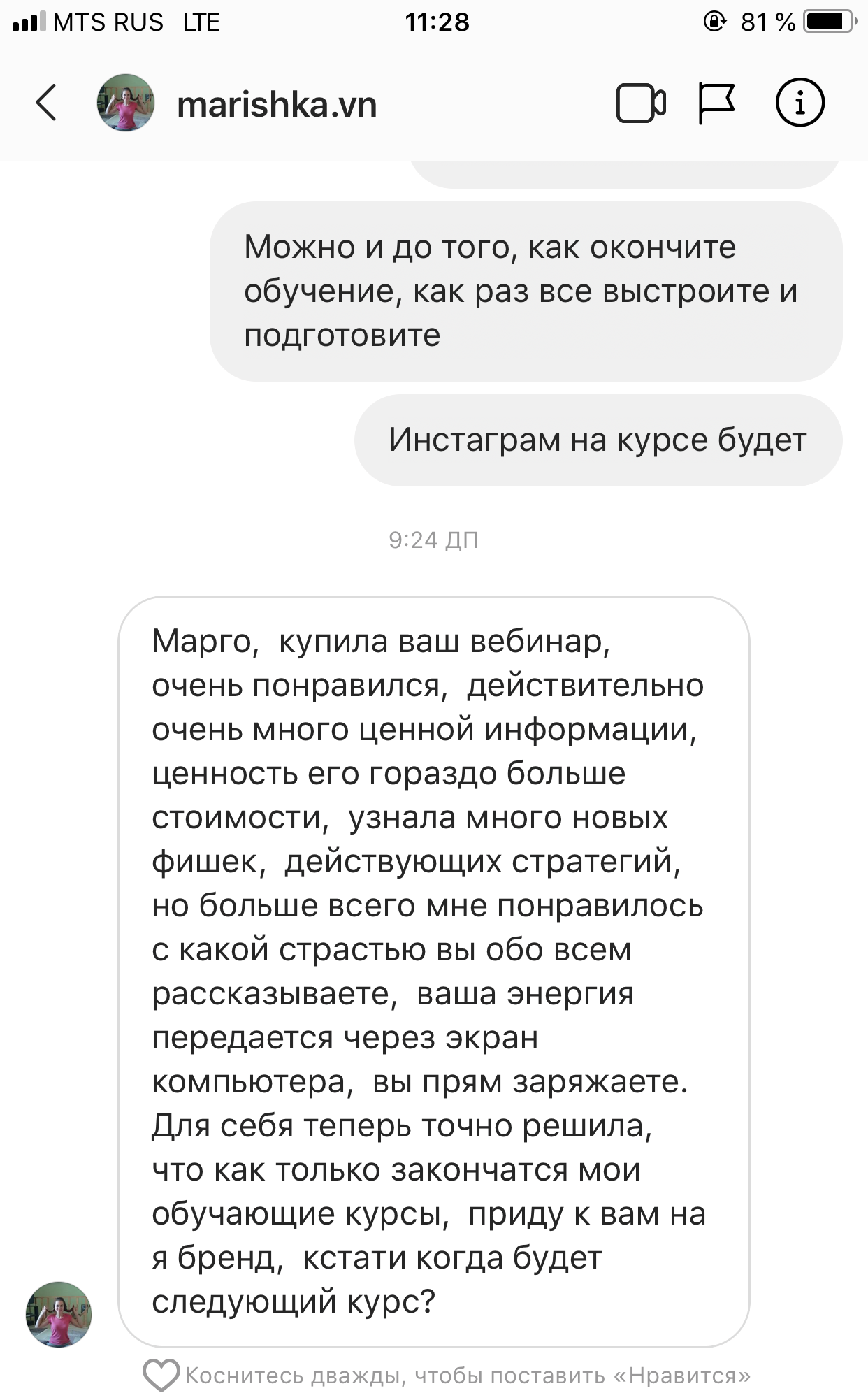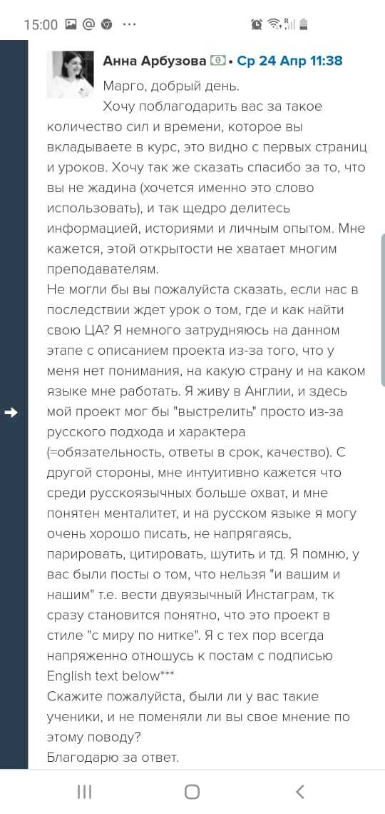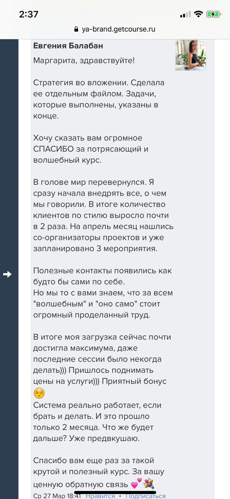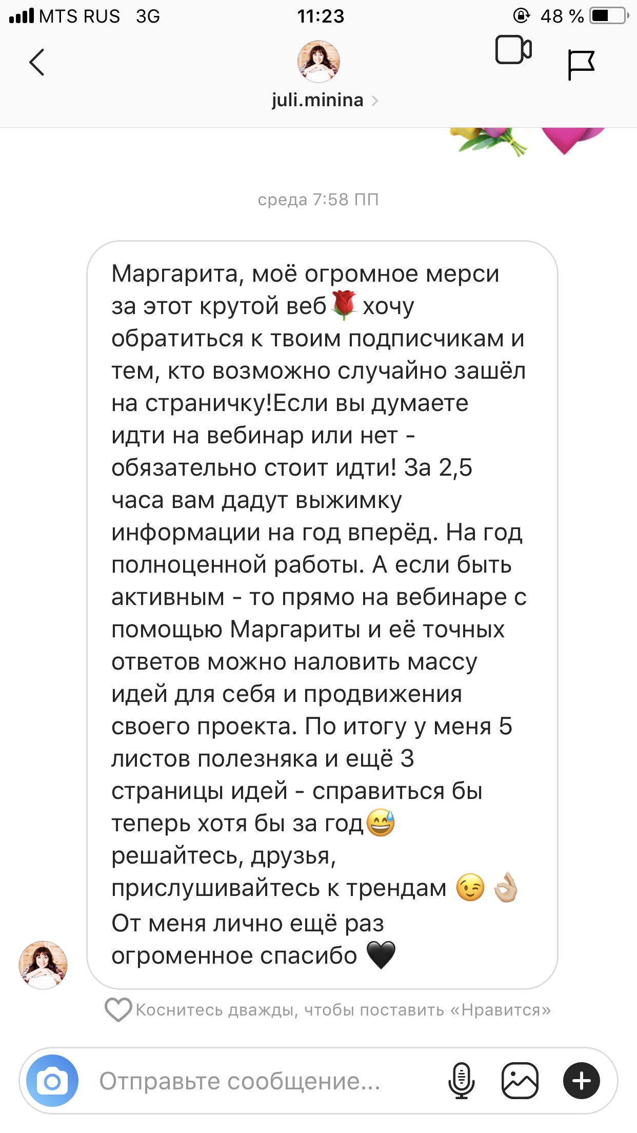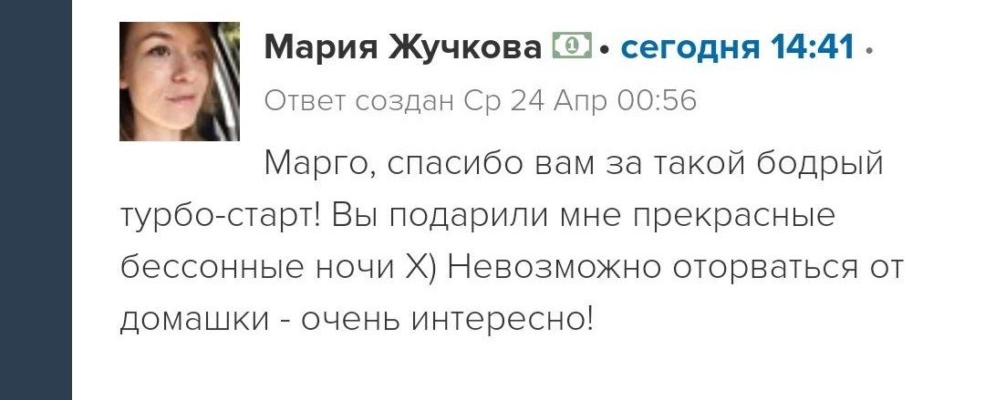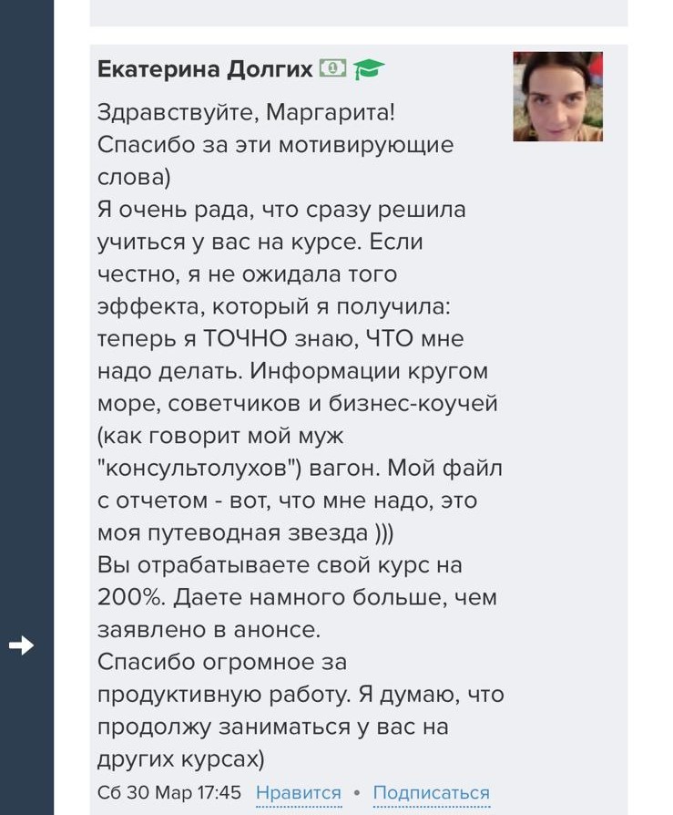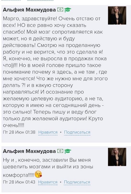 Спасибо Марго за этот курс! Марго помогла раскрыть мне себя.