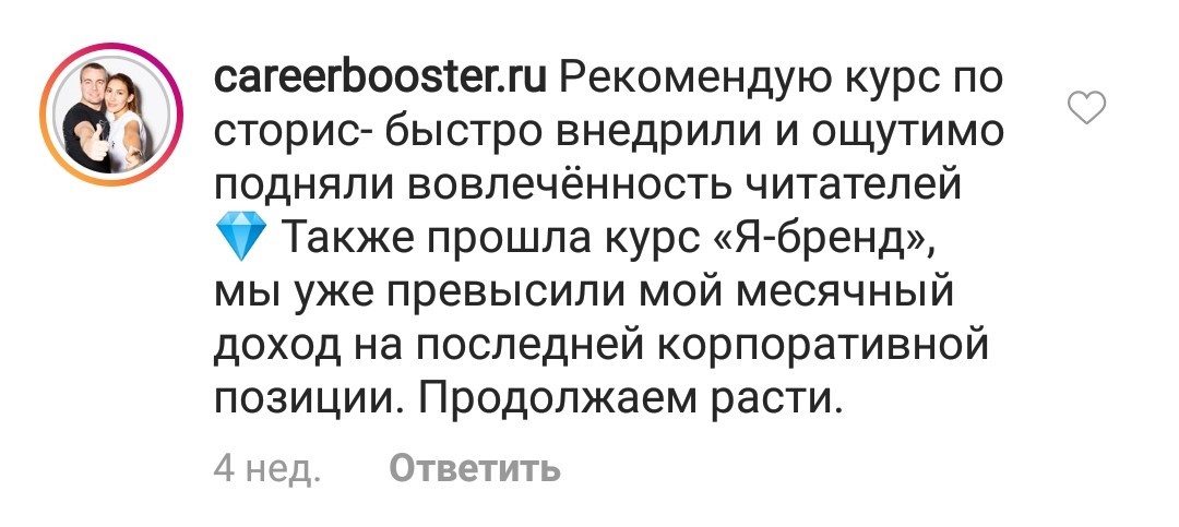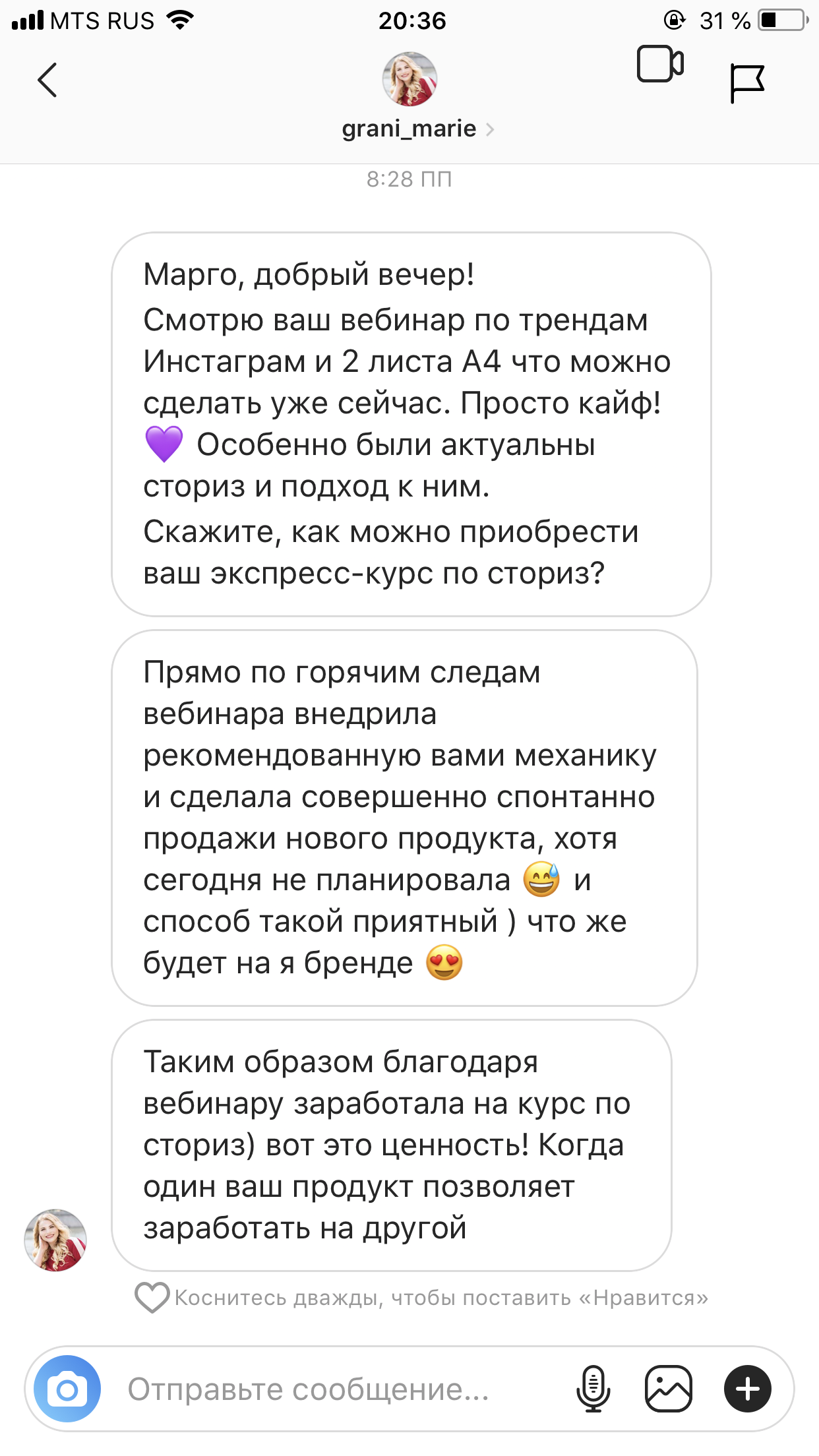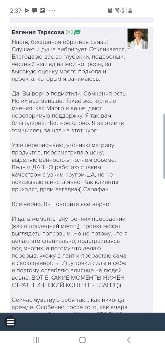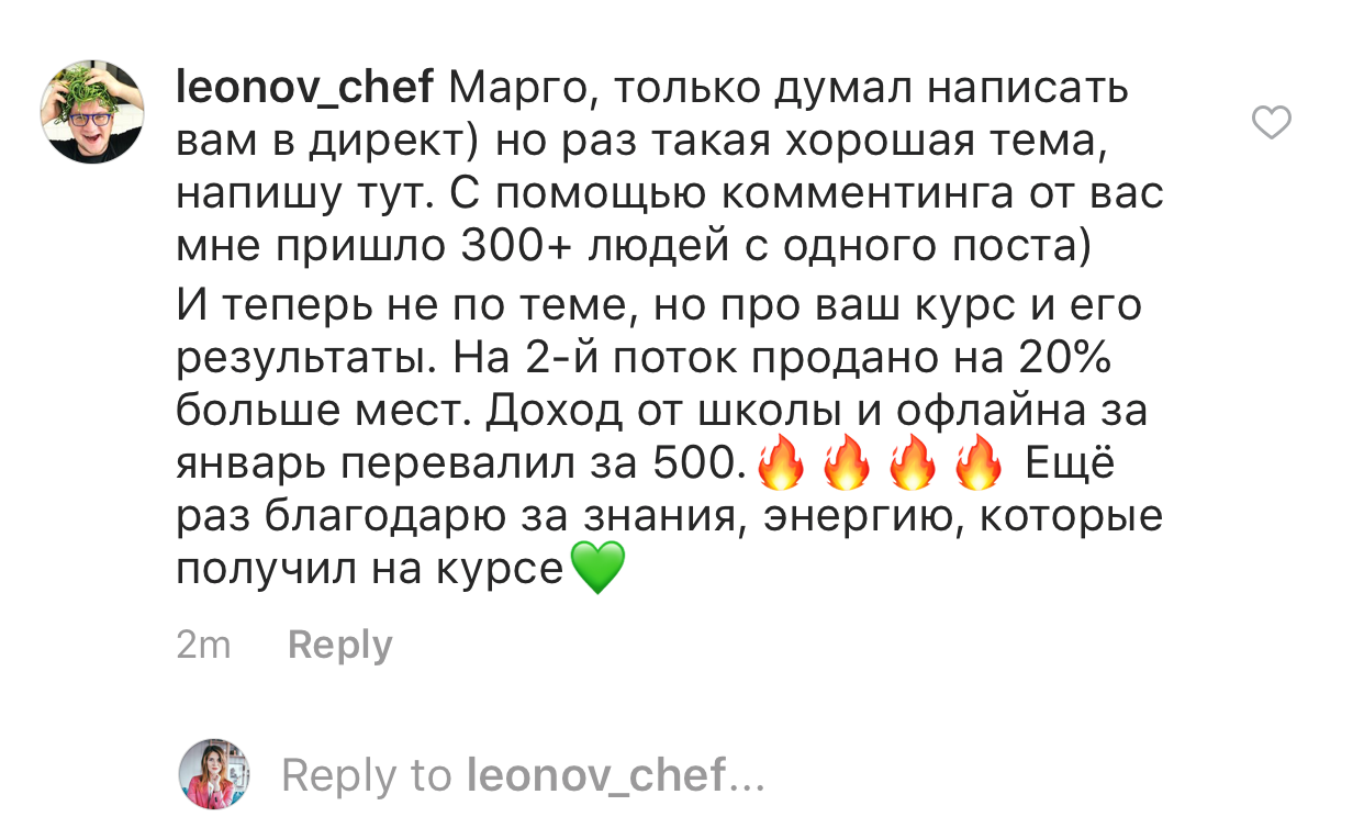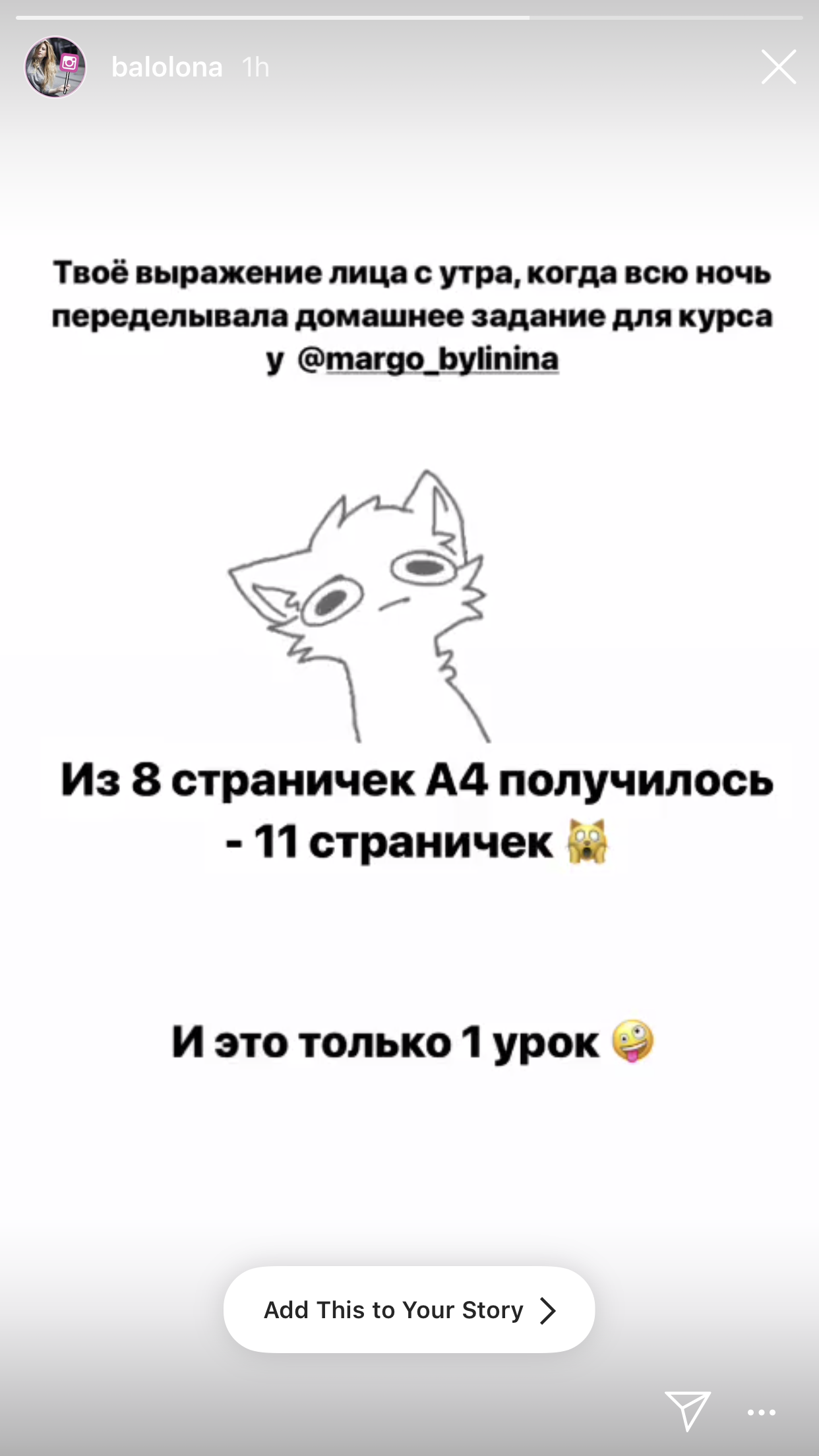 Курс был наполнен не только теорией, но и практикой. Бывало я ночами сидела за домашними заданиями, но именно это и дало результат. Помимо основных тем, было множество дополнительной информации, которая оказалась невероятно ценной. И, конечно, на курсе я получила множество современных инструментов для построения и продвижения своего бренда, технические моменты, которых я так боялась, теперь даются мне гораздо легче. Мои проекты приобрели очертания и каждый день набирают все больше и больше силы.