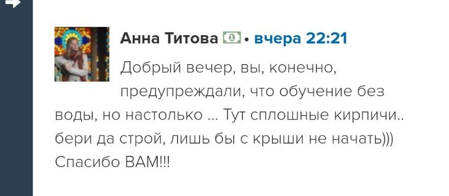 На этот курс, я пришла и вложила последние деньги в себя. Было страшно, сумма для меня была не маленькой. Но я еще ни разу не пожалела!