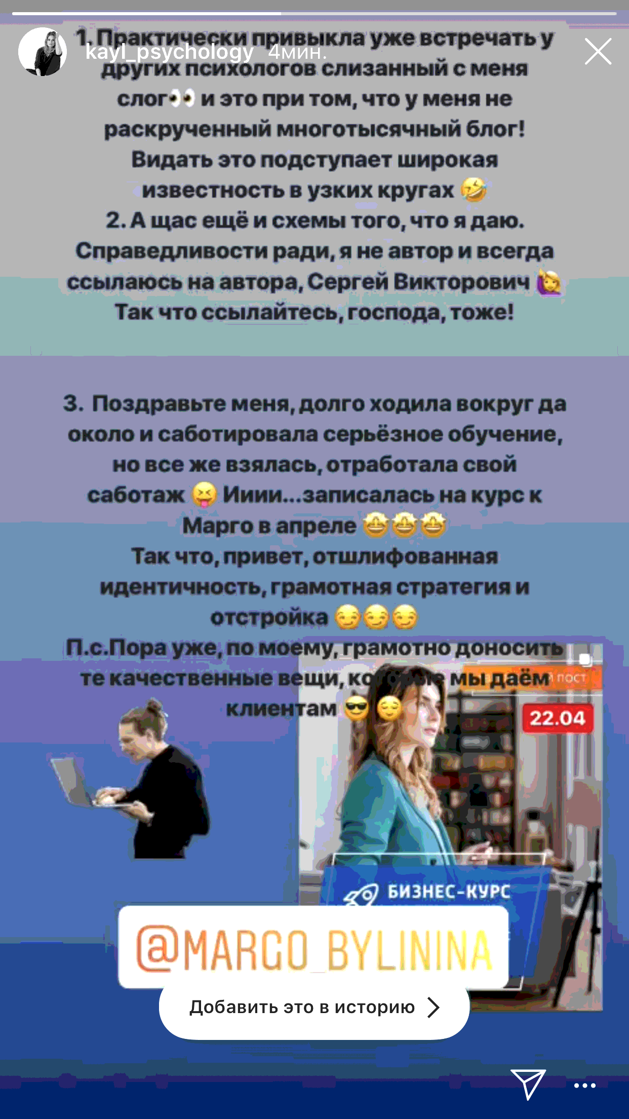 Я шла за тем, чтобы научиться продвигать в себя. Я видела лишь верхушку айсберга, а в итоге получила гораааздо больше!