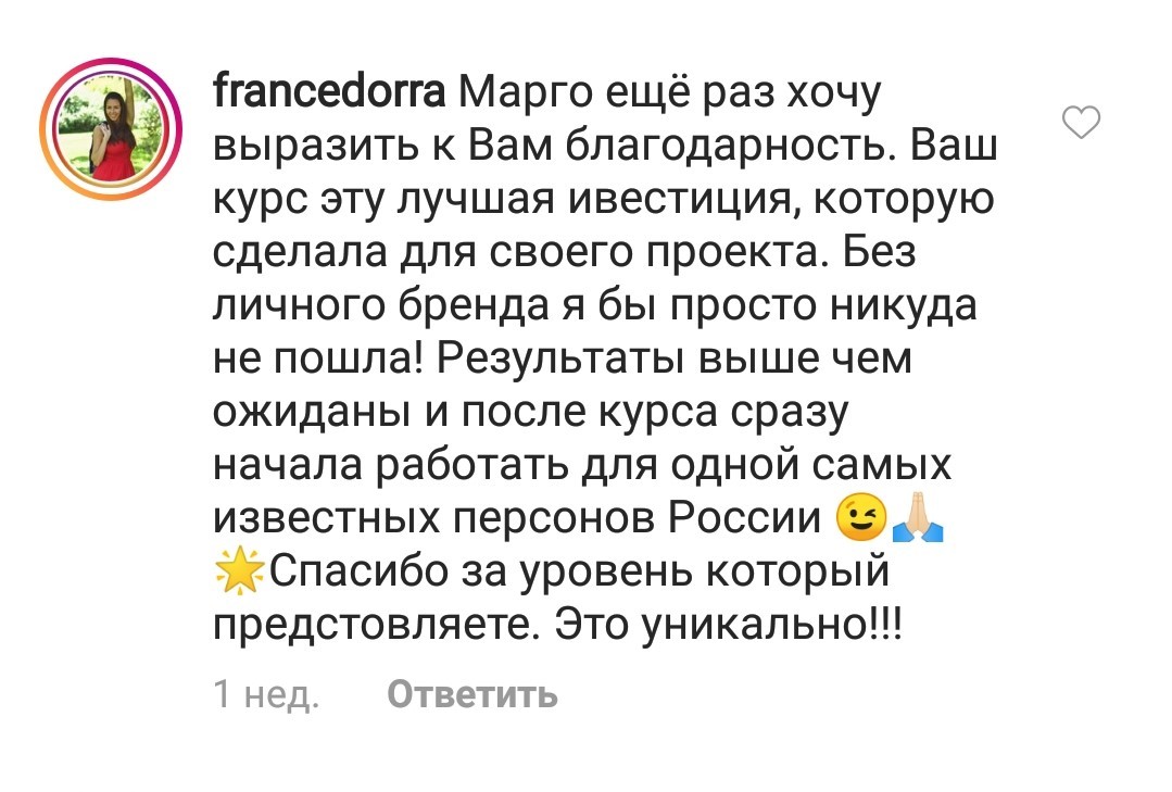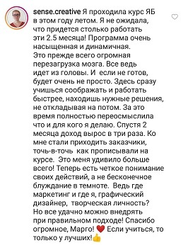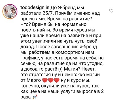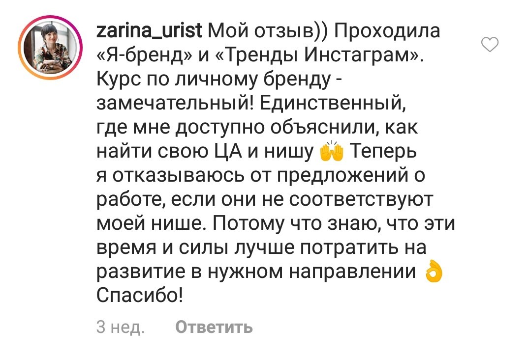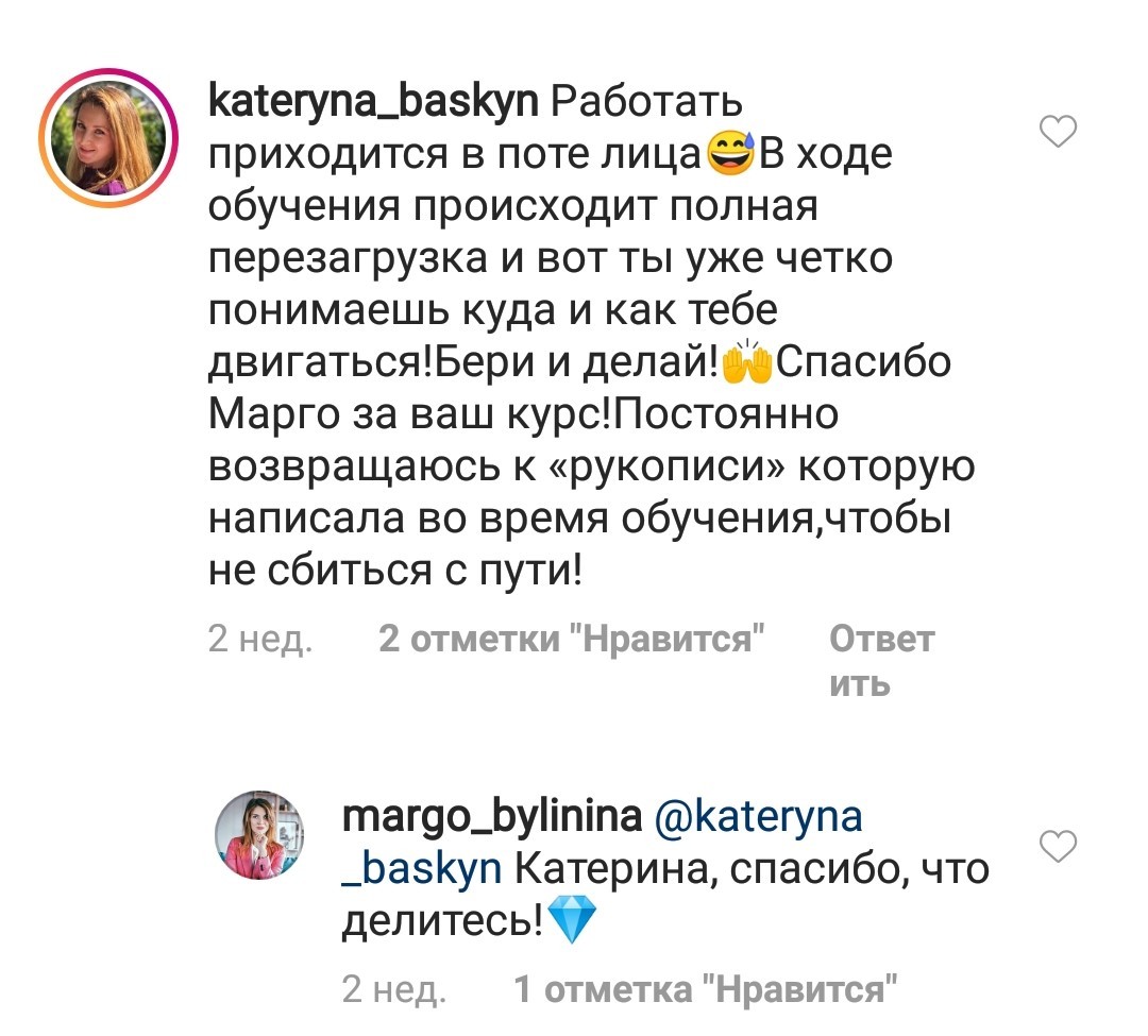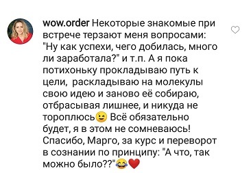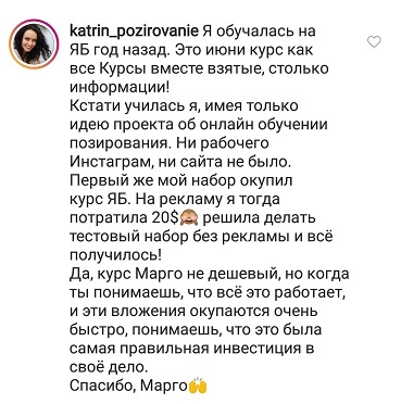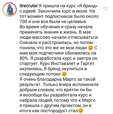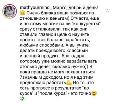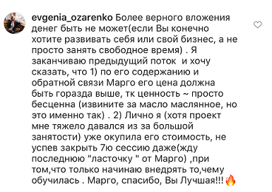 Стоимость тренинга я уже окупила за первую неделю примерно, как начала учиться, если я правильно помню, то училаст в 15м потоке.
