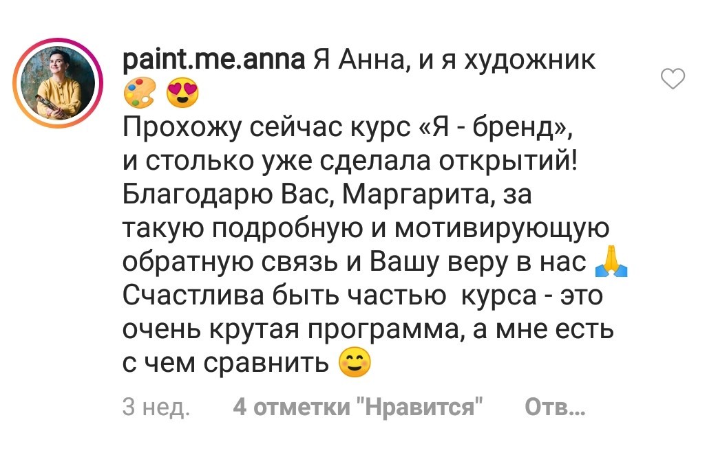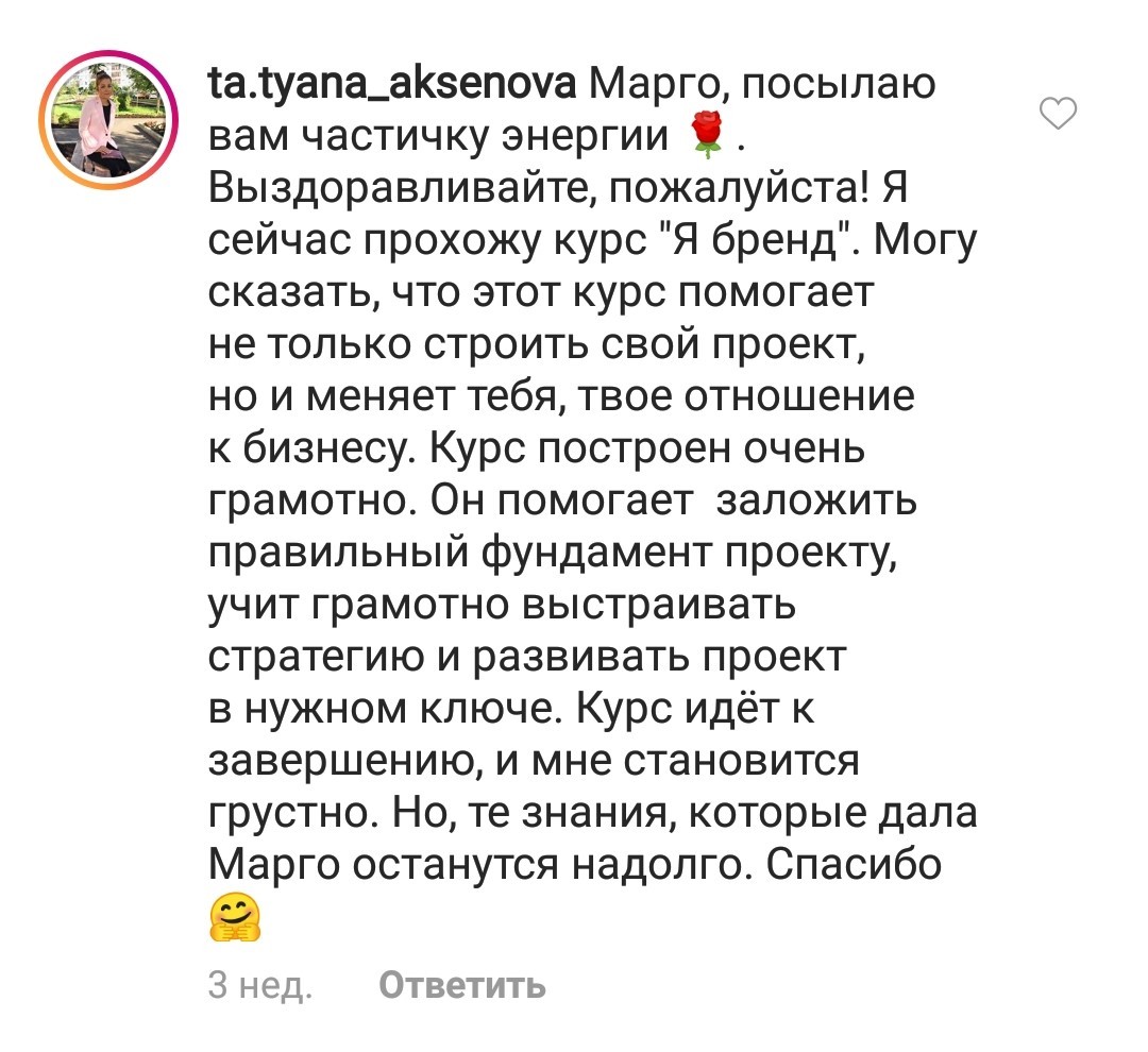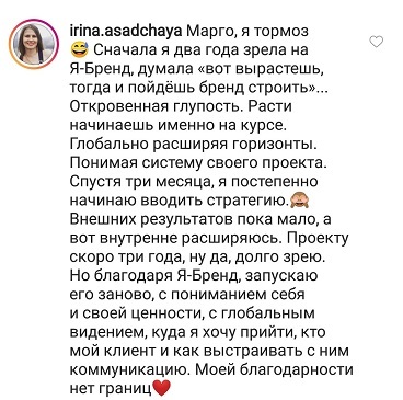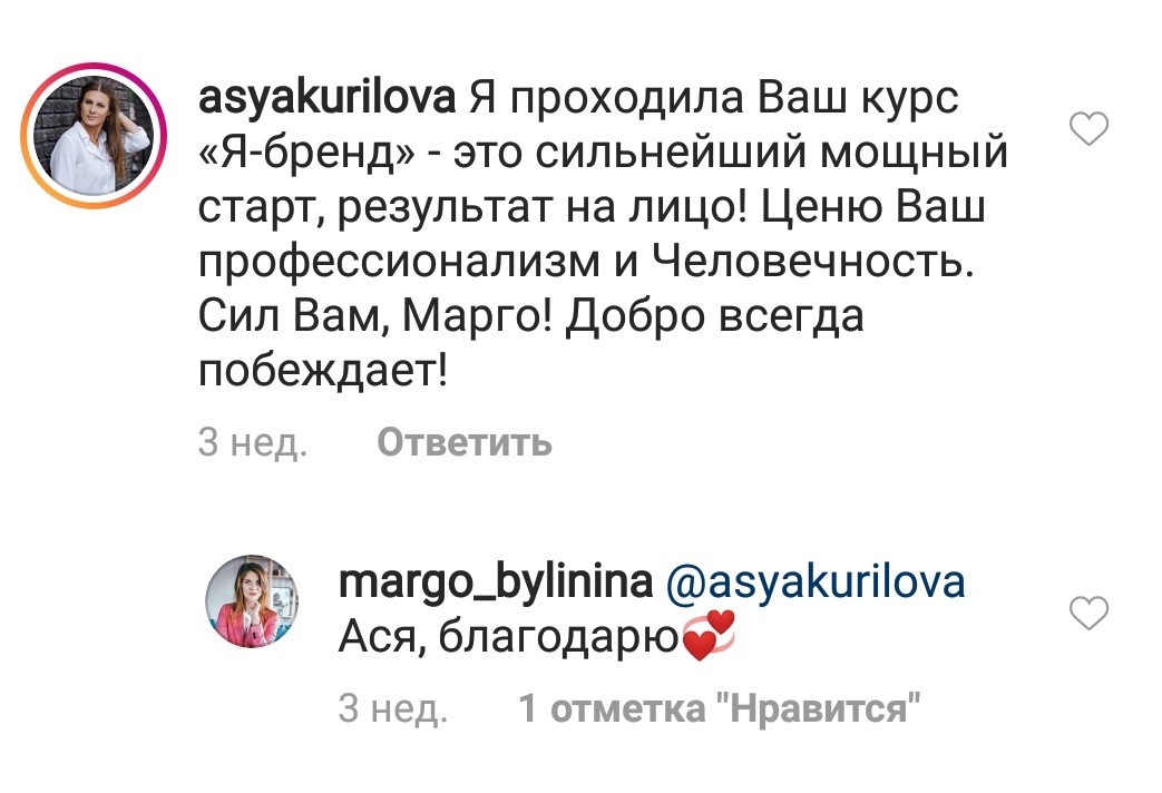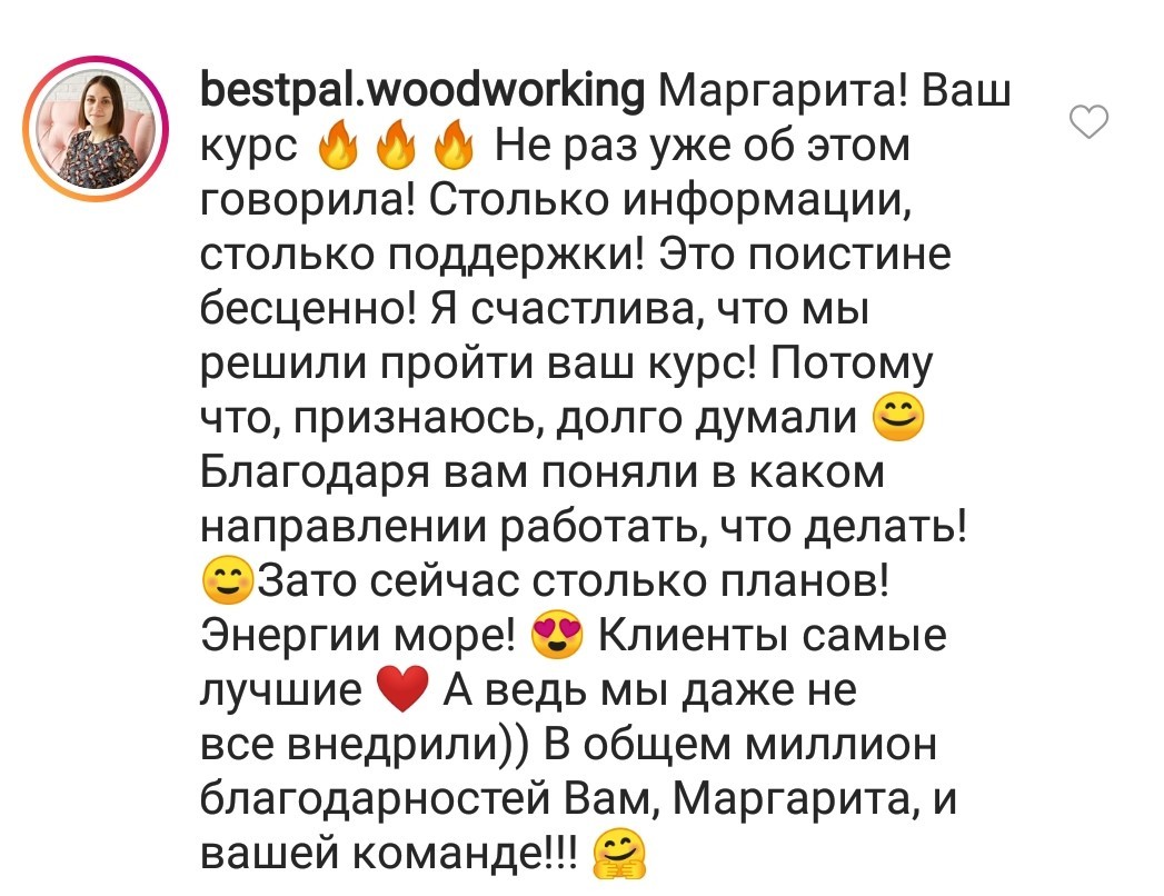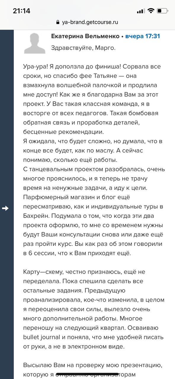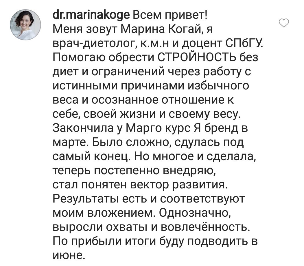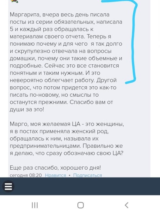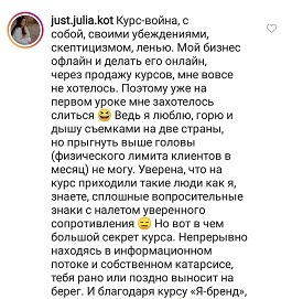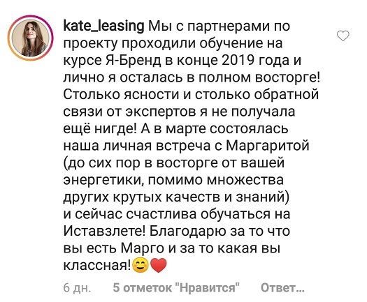 Проект мой стартовал с января, сейчас вышла на доход чуть больше 100 тр, но цель ставлю в 5 раз больше! И знаю, что благодаря тем знаниям, которые вы дали,я смогу легко этого достичь. Я вышла на свою ЦА, настолько комфортная для меня аудитория, ощущения что они это я.