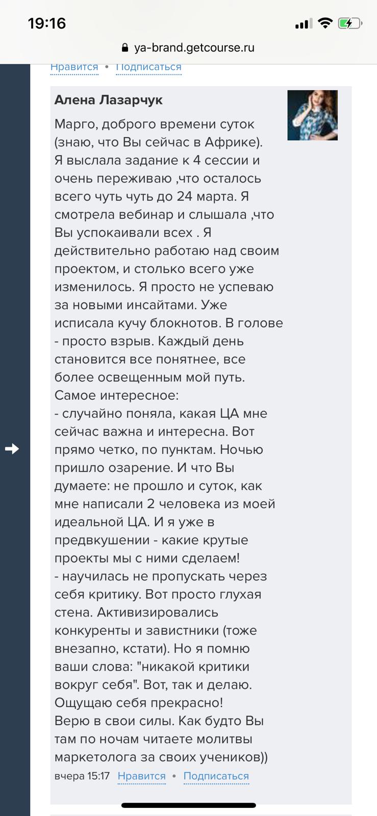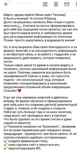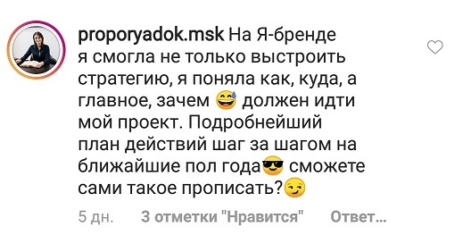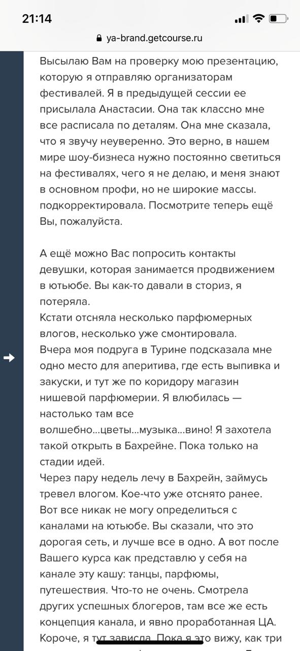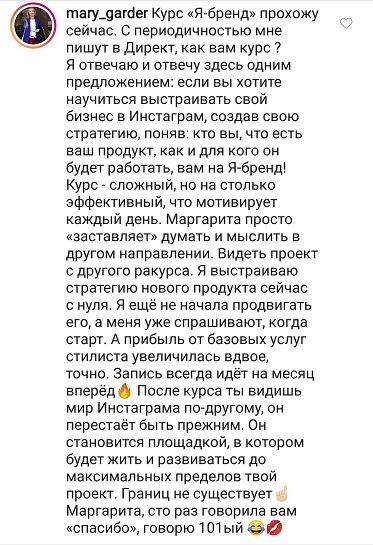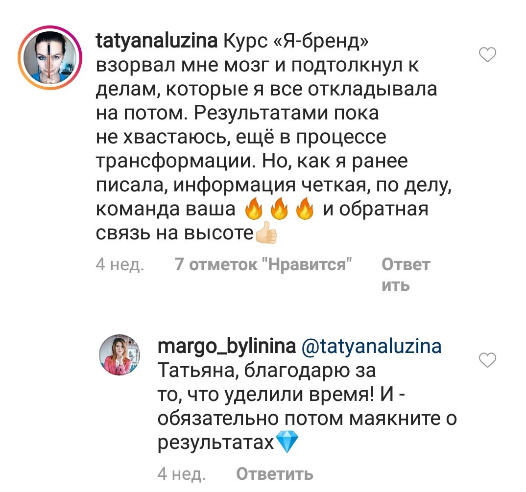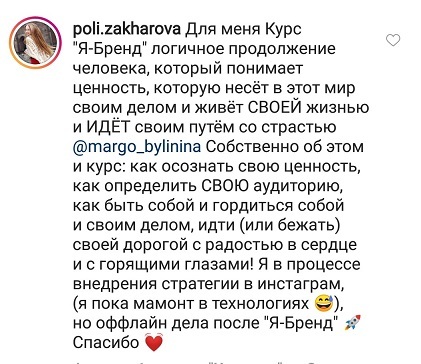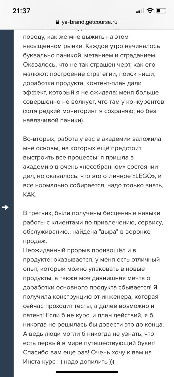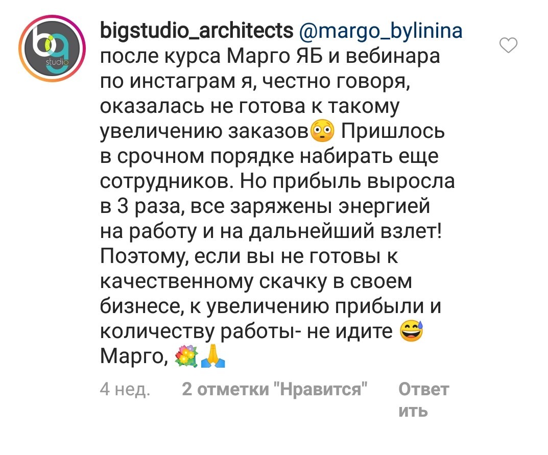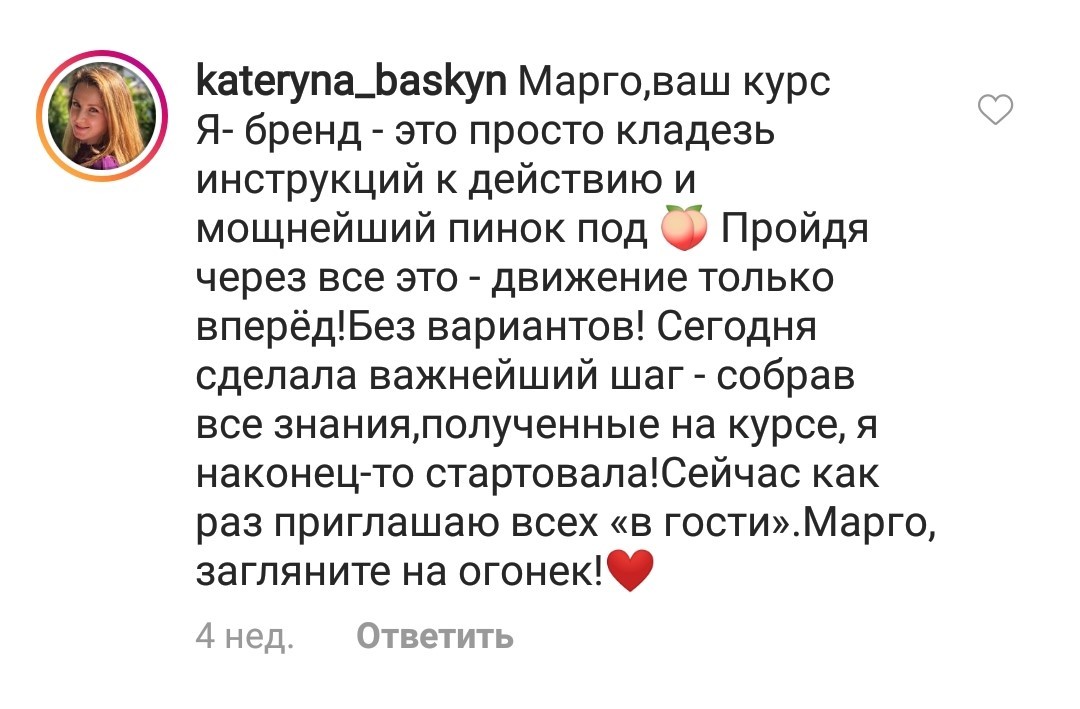 Проект мой стартовал с января, сейчас вышла на доход чуть больше 100 тр, но цель ставлю в 5 раз больше! И знаю, что благодаря тем знаниям, которые вы дали,я смогу легко этого достичь. Я вышла на свою ЦА, настолько комфортная для меня аудитория, ощущения что они это я.