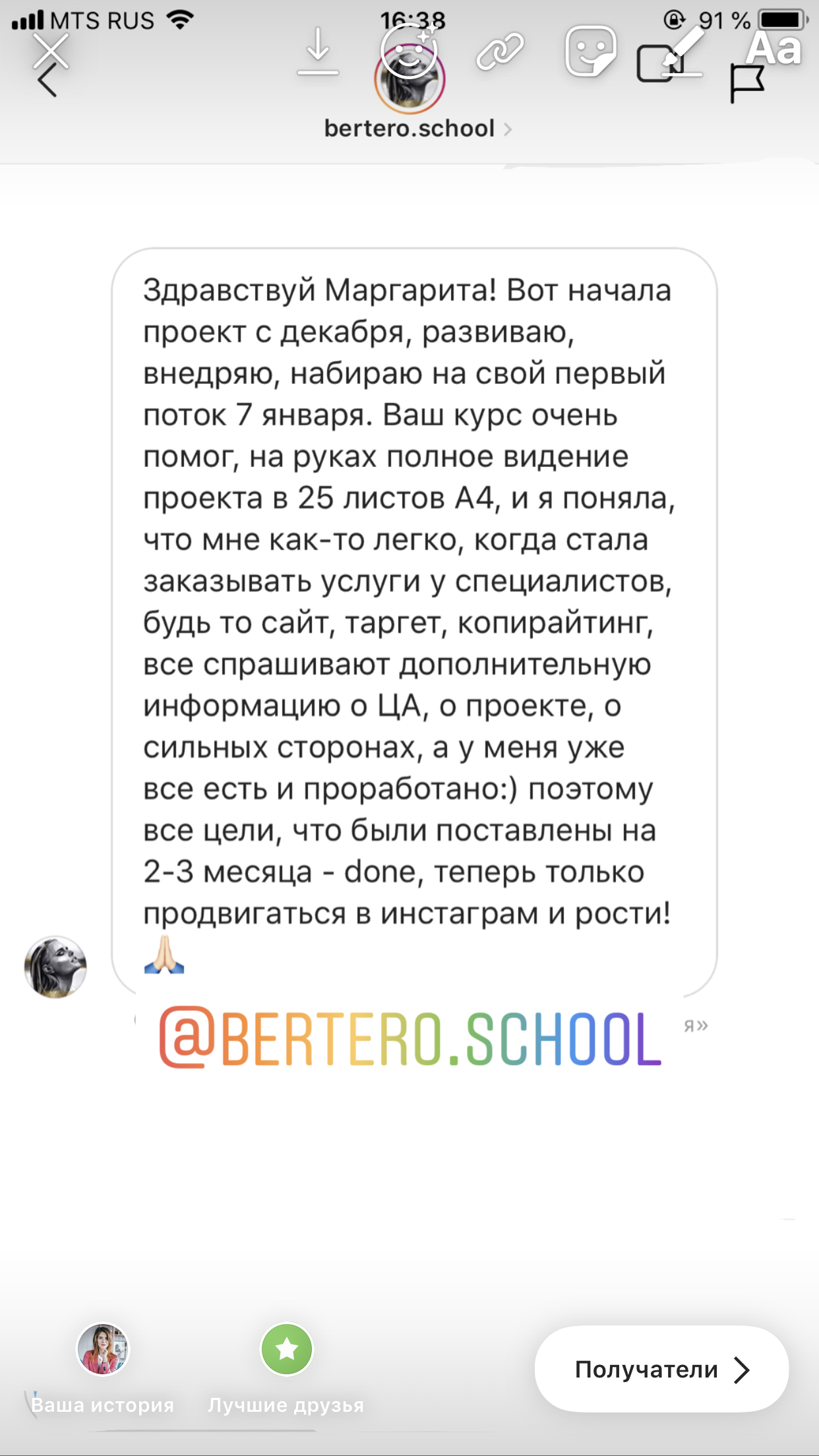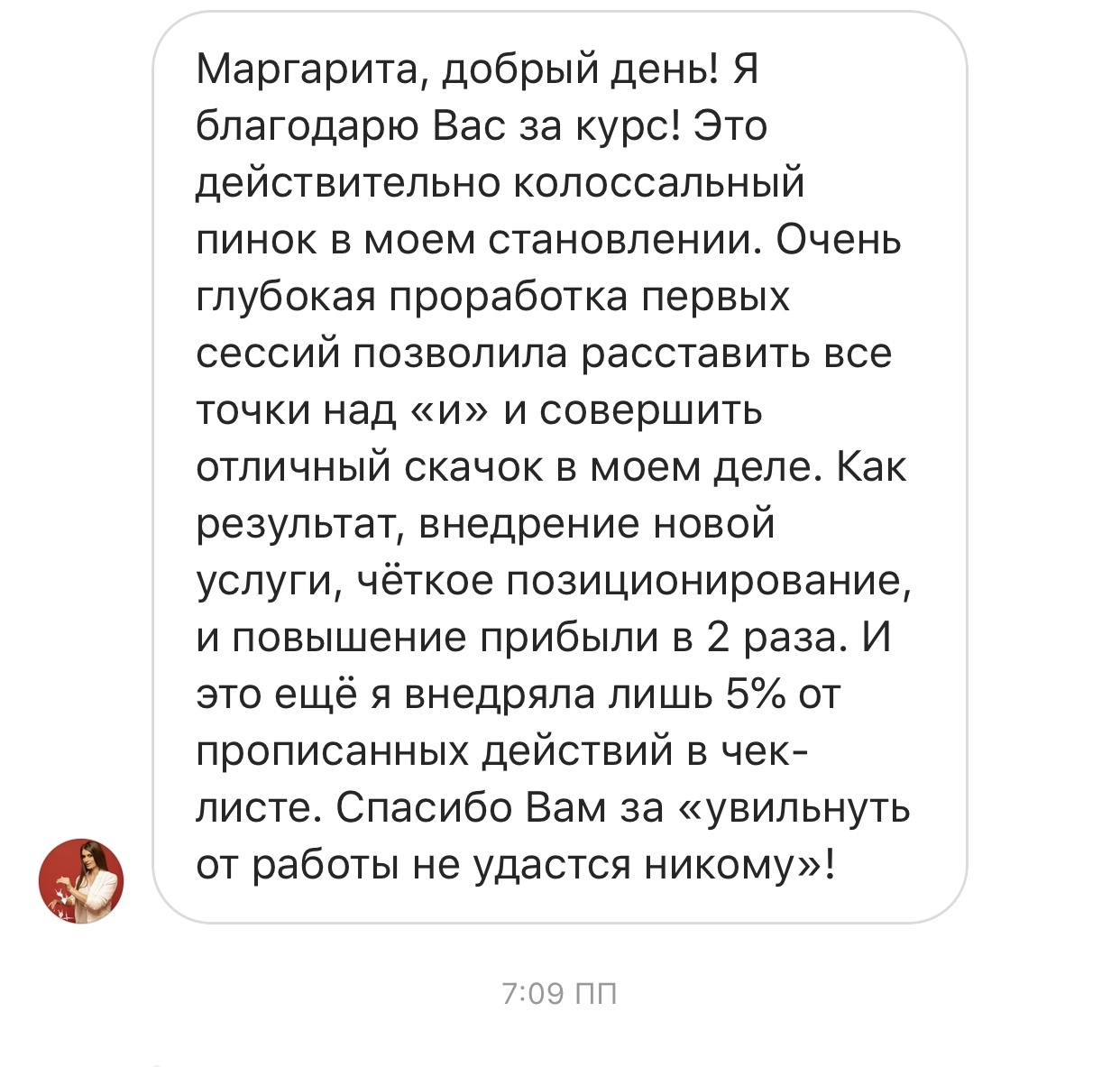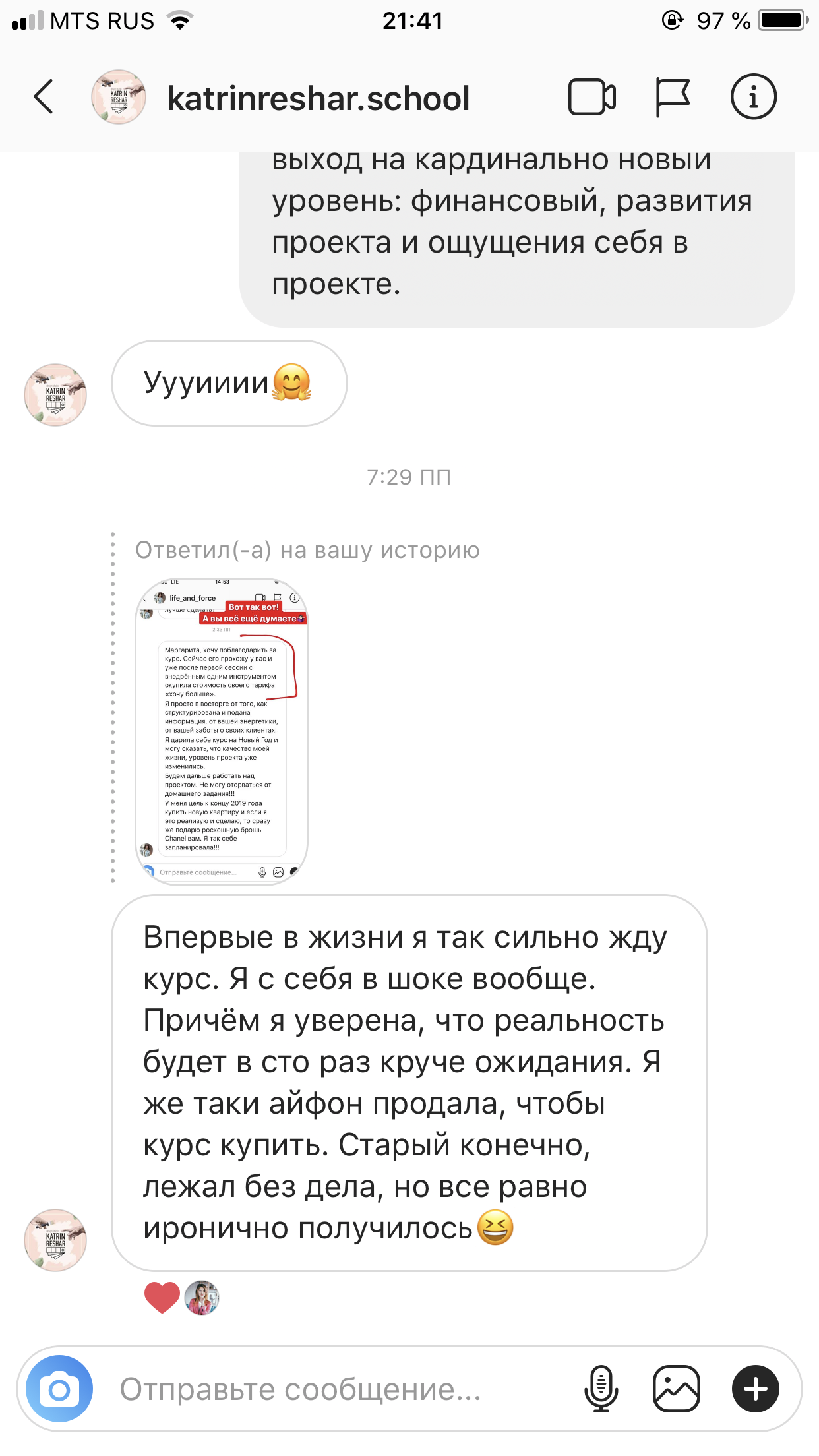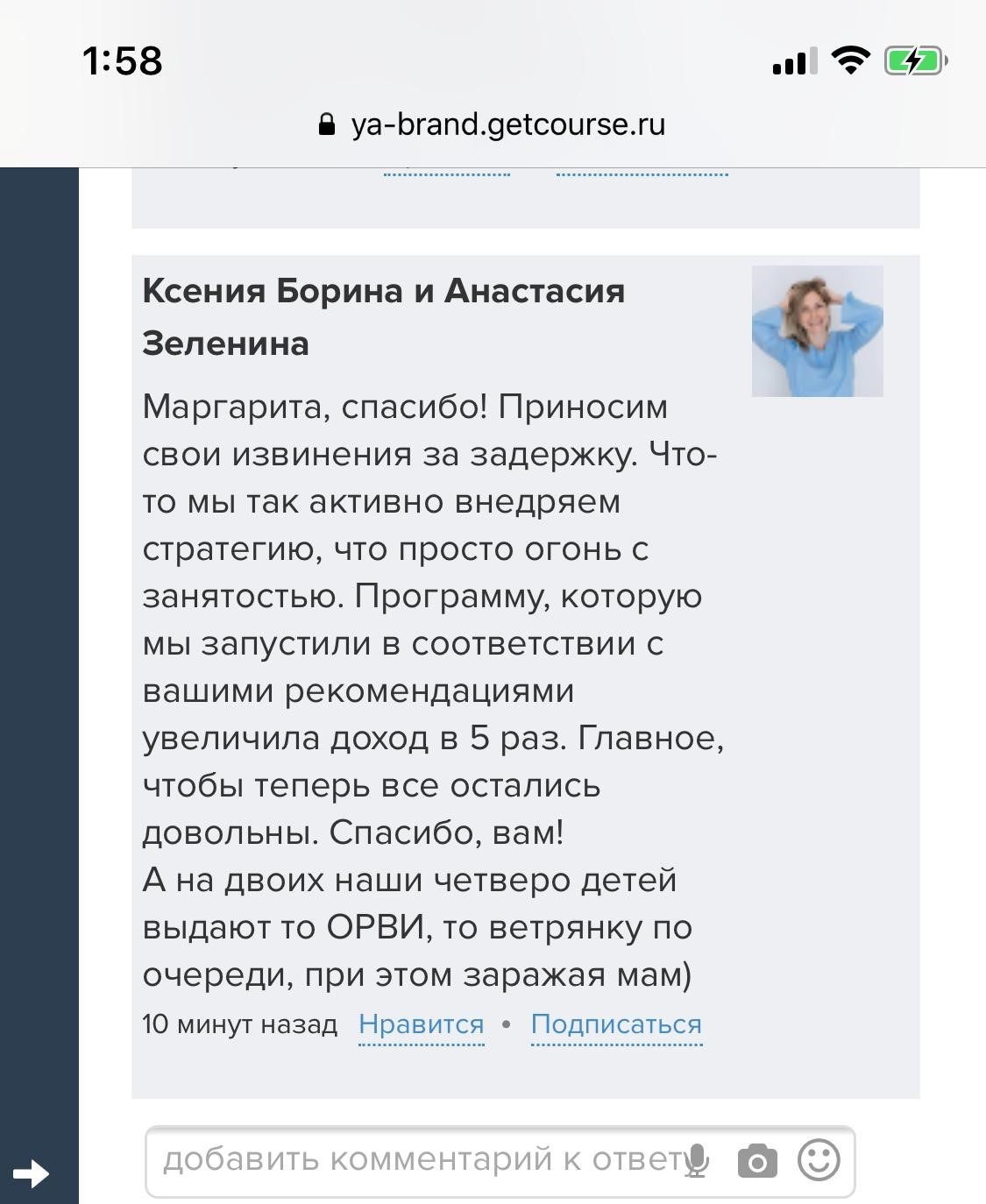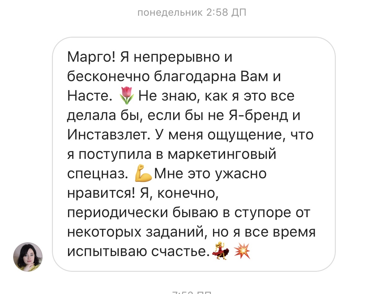 Проект мой стартовал с января, сейчас вышла на доход чуть больше 100 тр, но цель ставлю в 5 раз больше! И знаю, что благодаря тем знаниям, которые вы дали,я смогу легко этого достичь. Я вышла на свою ЦА, настолько комфортная для меня аудитория, ощущения что они это я.
