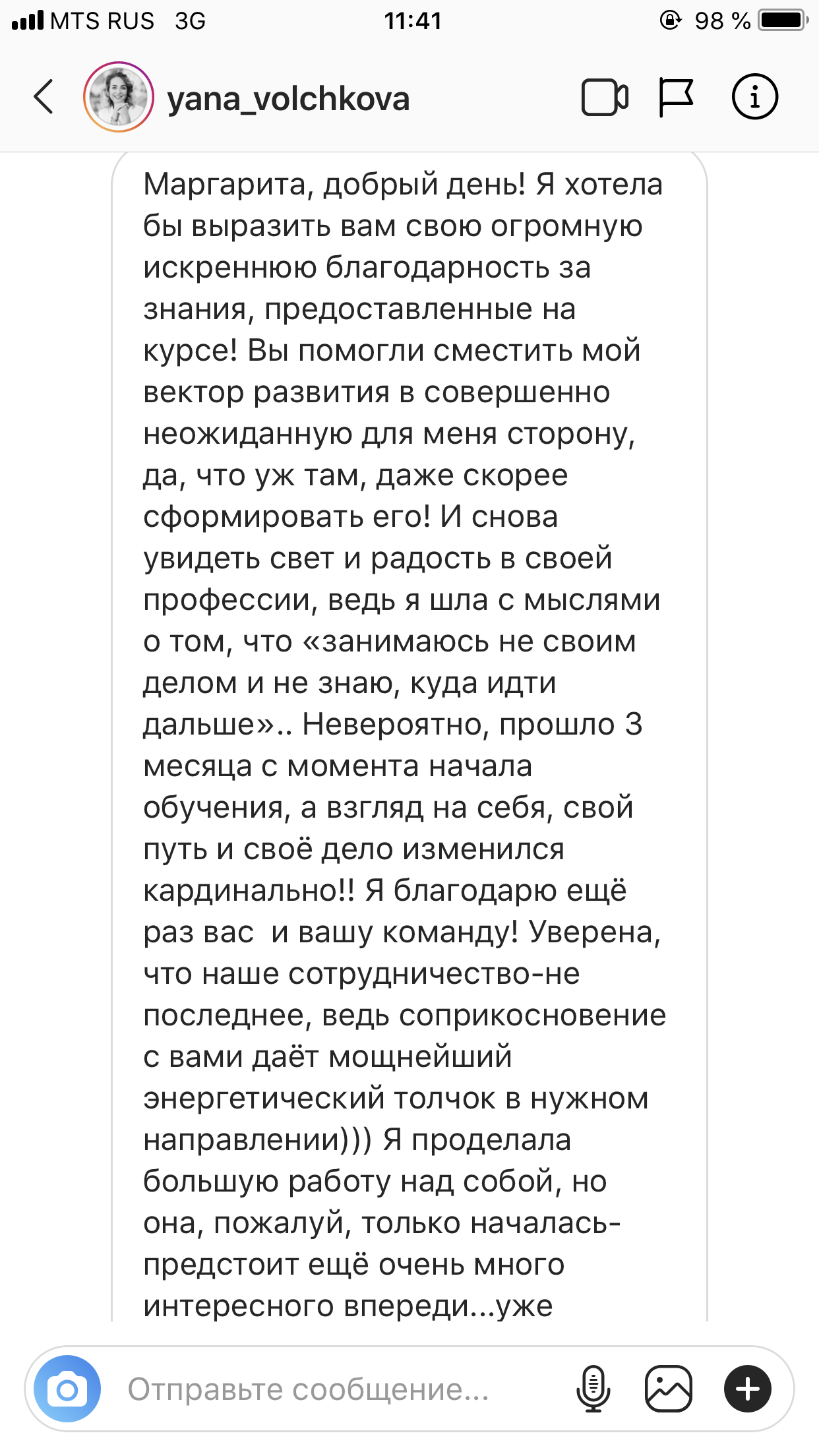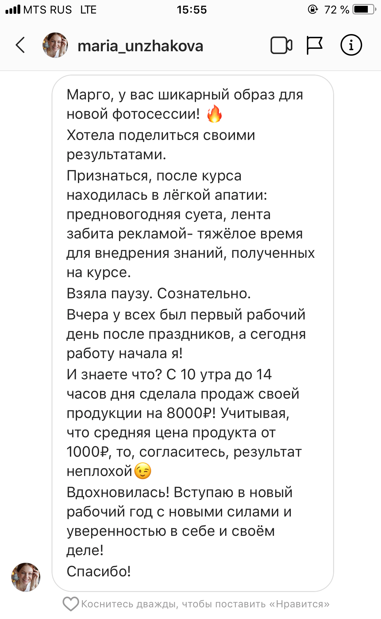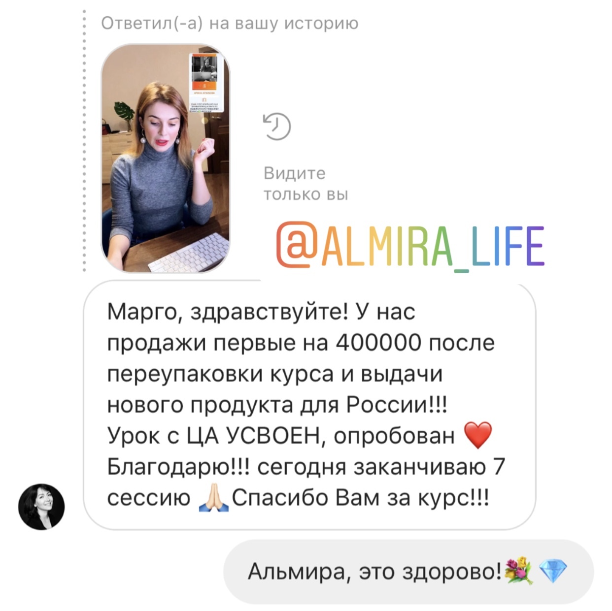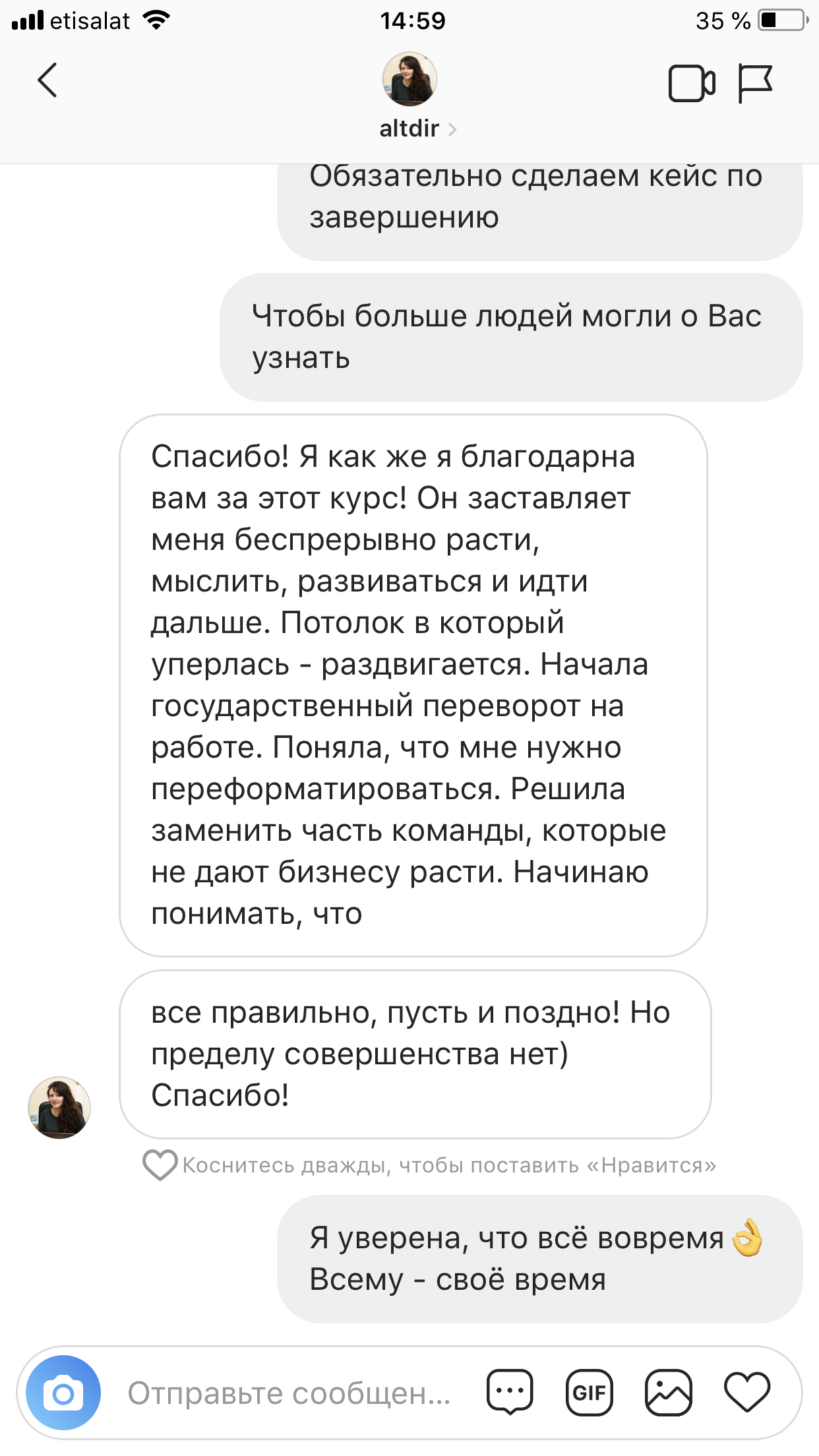 Меня зовут Альфия Фахрутдинова. Уже который месяц пытаюсь вам написать слова благодарности, но нахожусь в таком потоке, что каждая минута расписана.