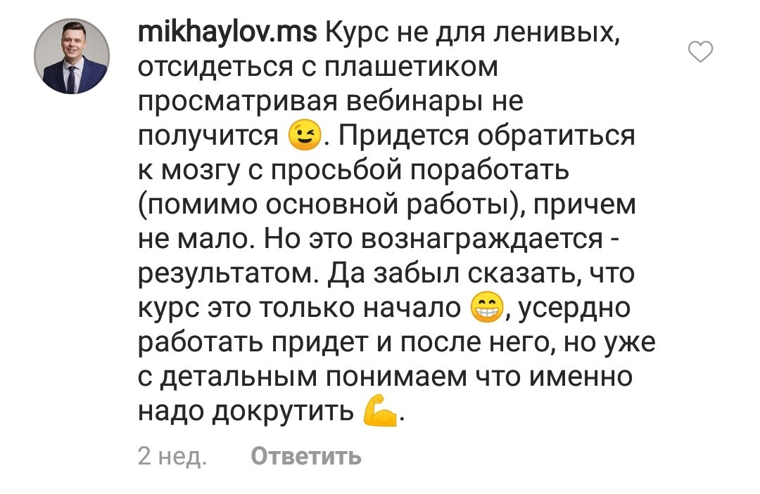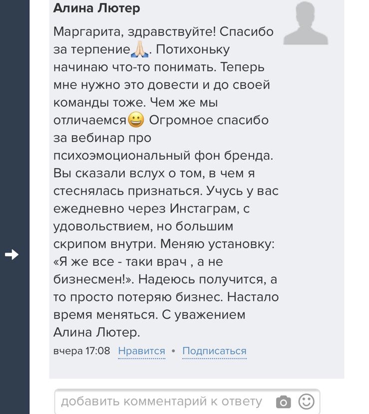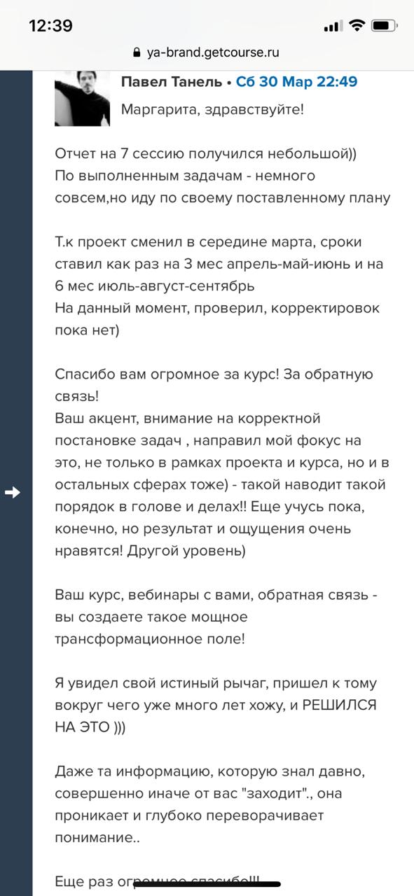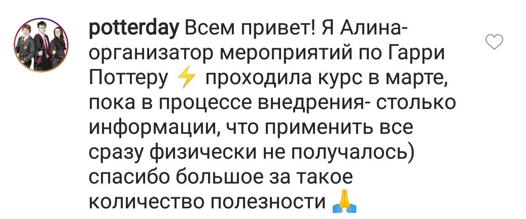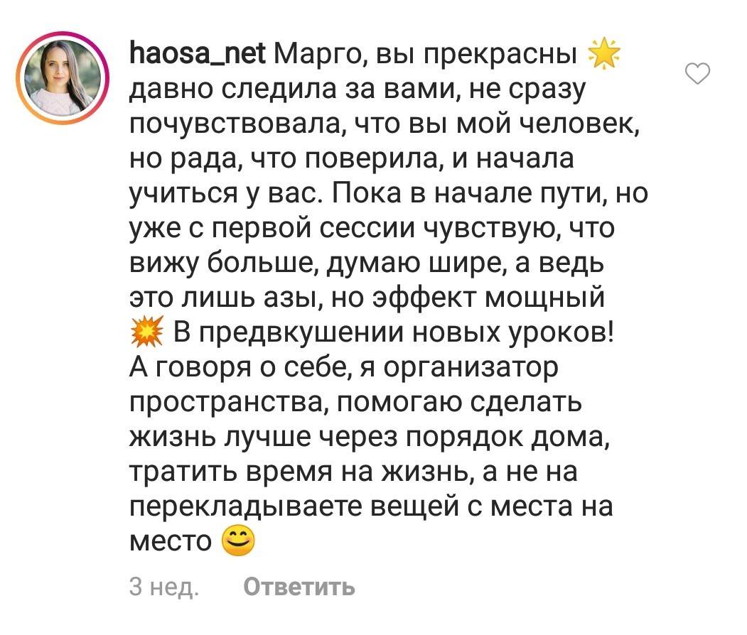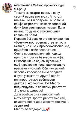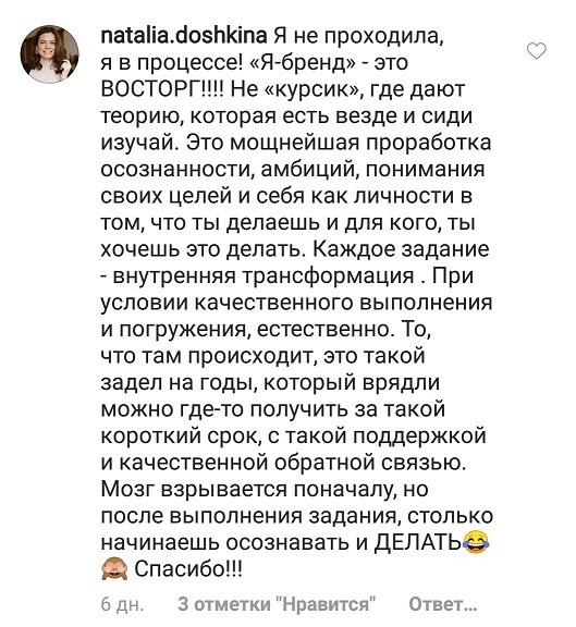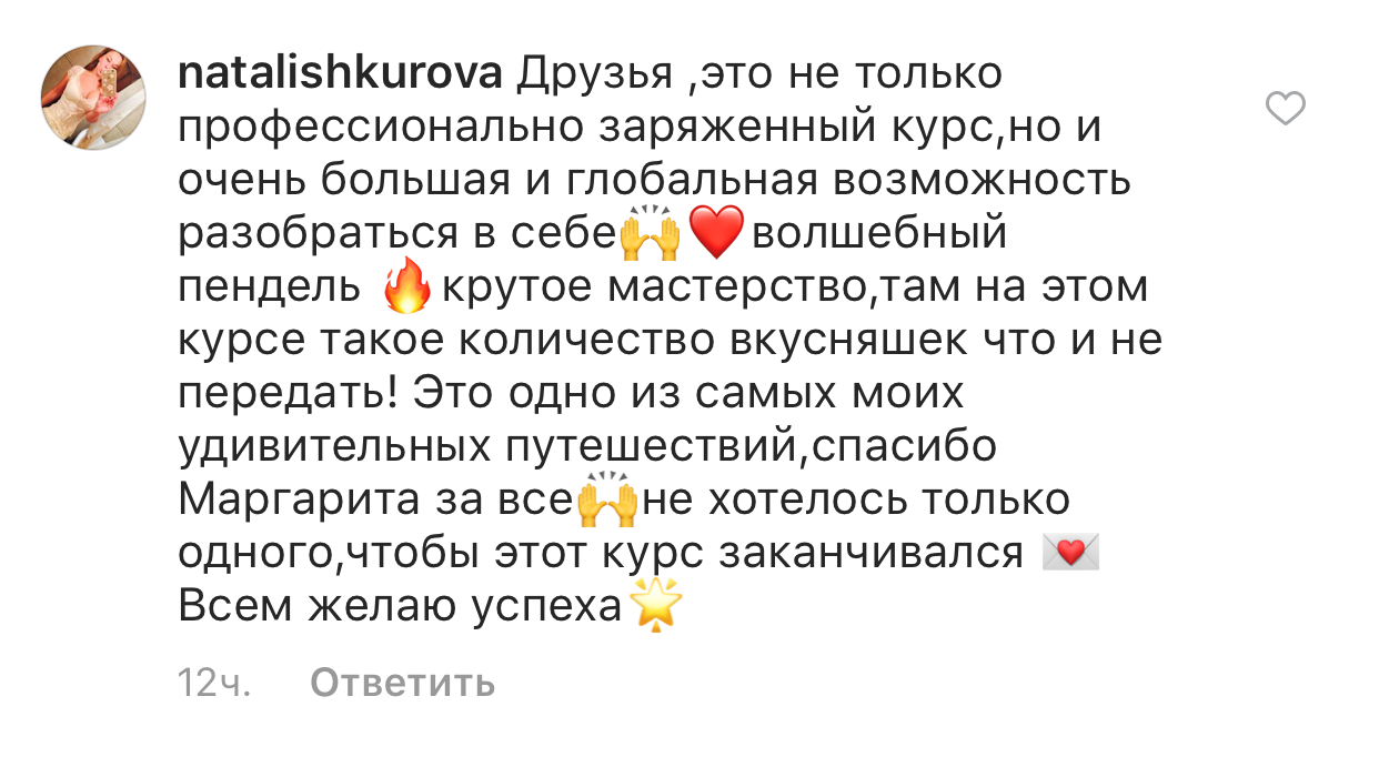 И еще, тренинги, которые я проходила после вашего курса уже не дотягивают, сложно учиться, когда ты уже учился у самого лучшего учителя. Это не лесть, это правда!