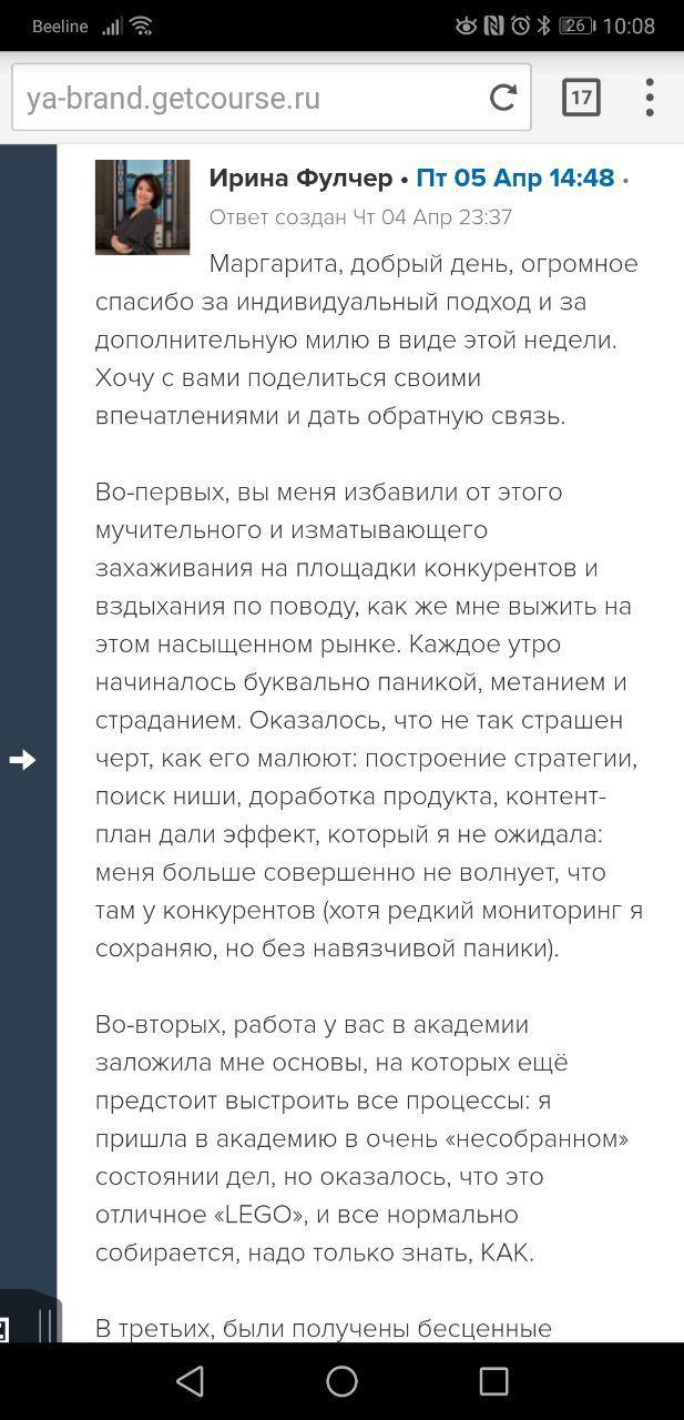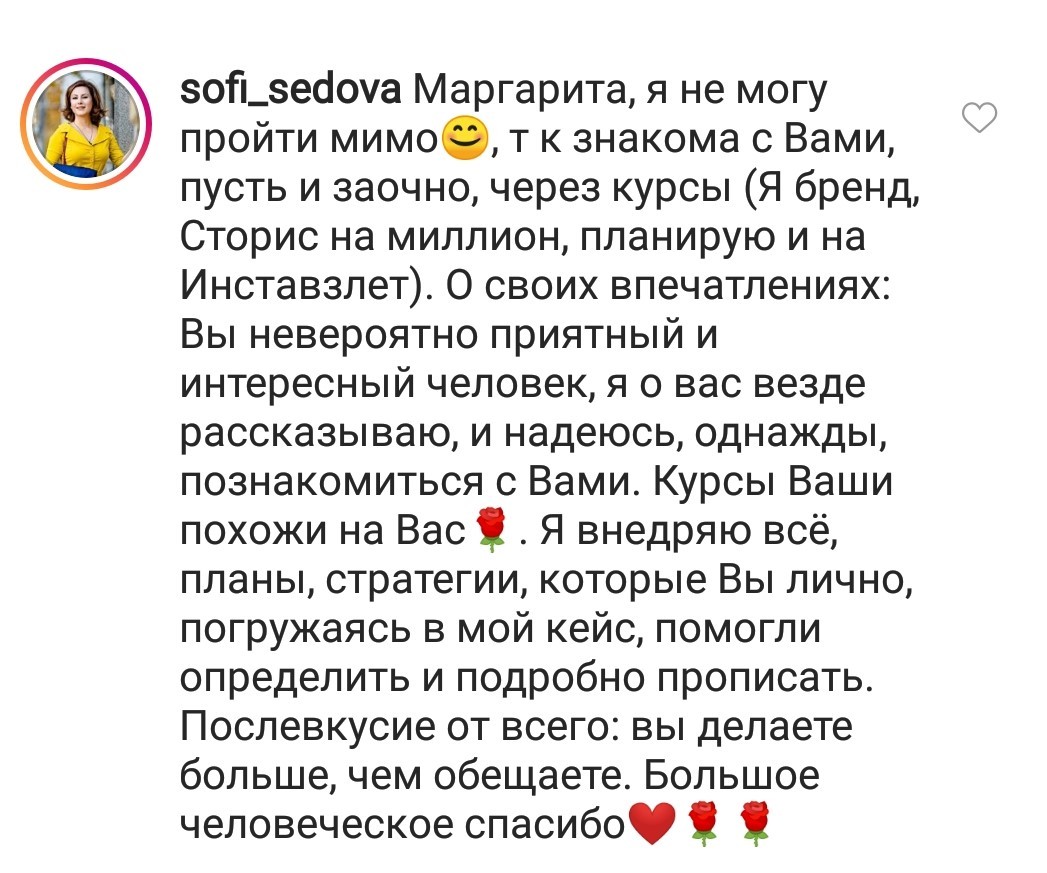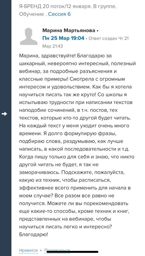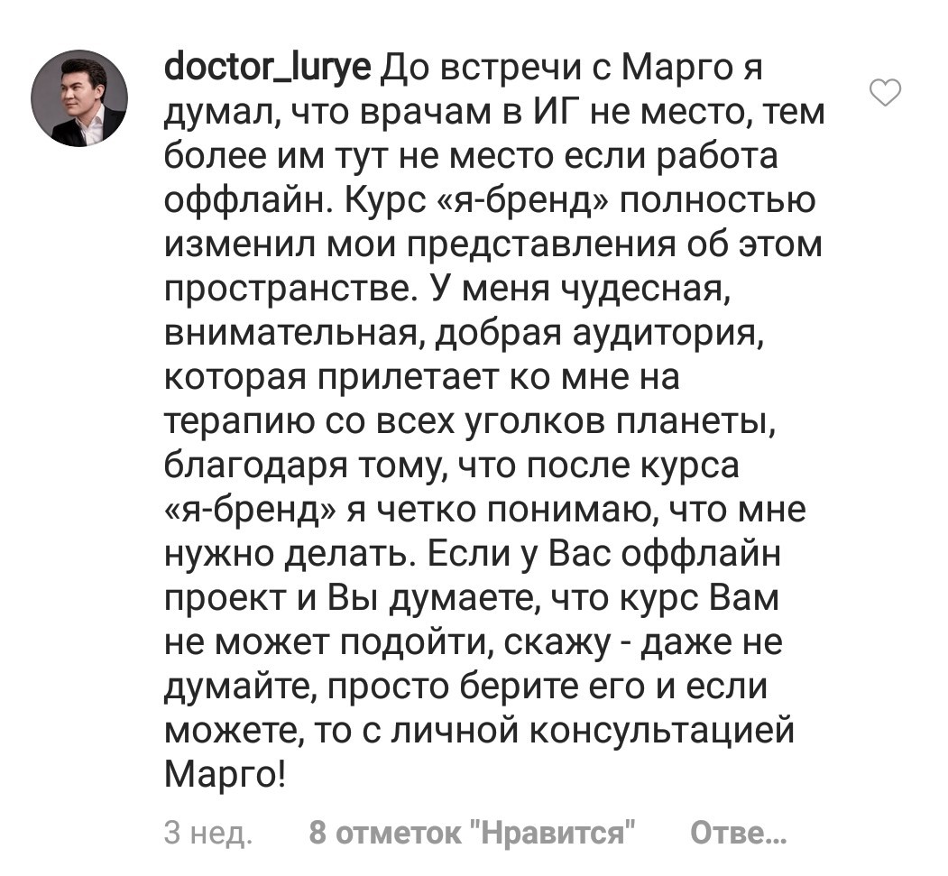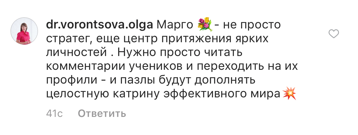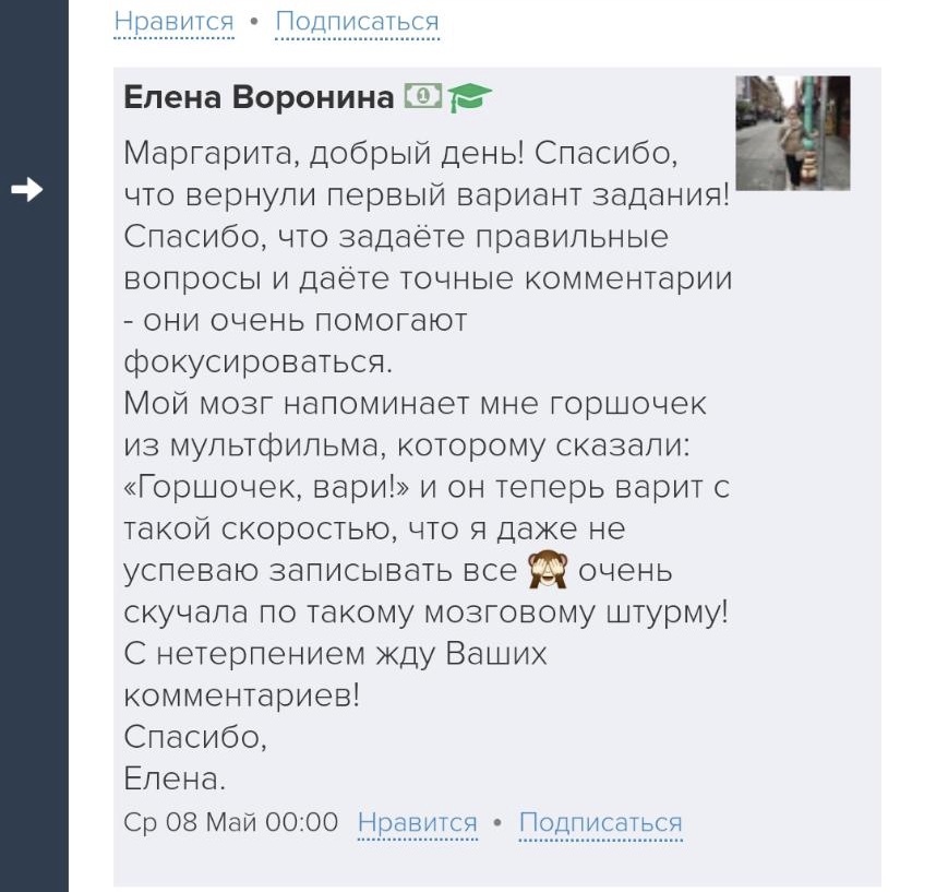 И еще, тренинги, которые я проходила после вашего курса уже не дотягивают, сложно учиться, когда ты уже учился у самого лучшего учителя. Это не лесть, это правда!