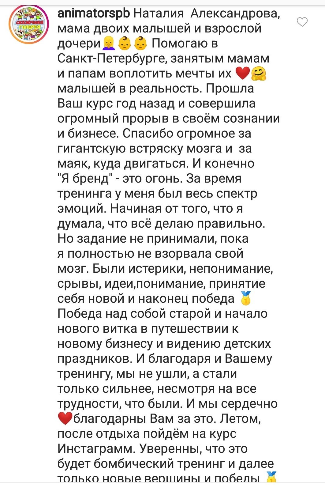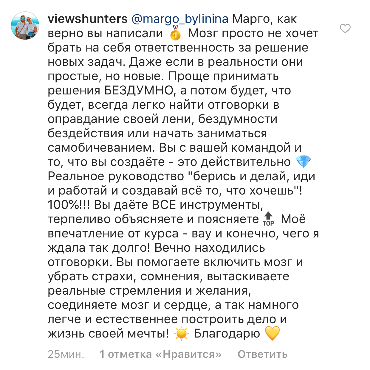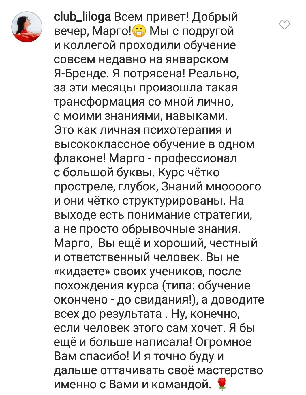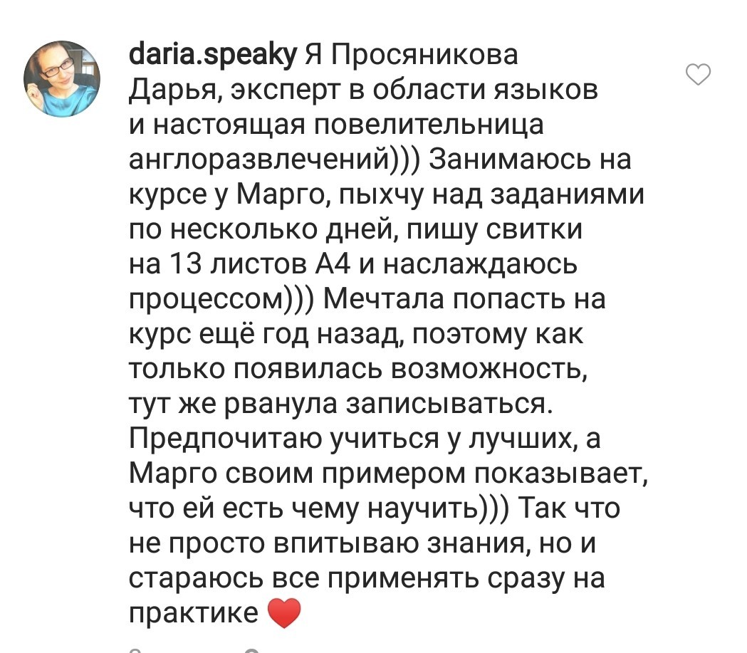 И еще, тренинги, которые я проходила после вашего курса уже не дотягивают, сложно учиться, когда ты уже учился у самого лучшего учителя. Это не лесть, это правда!