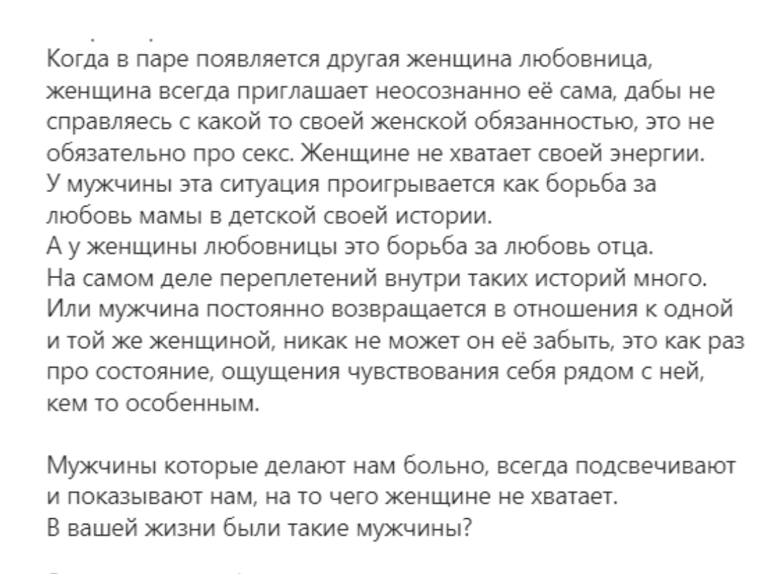 Например, пост о том, какие образы на основе бессознательного мы транслируем: