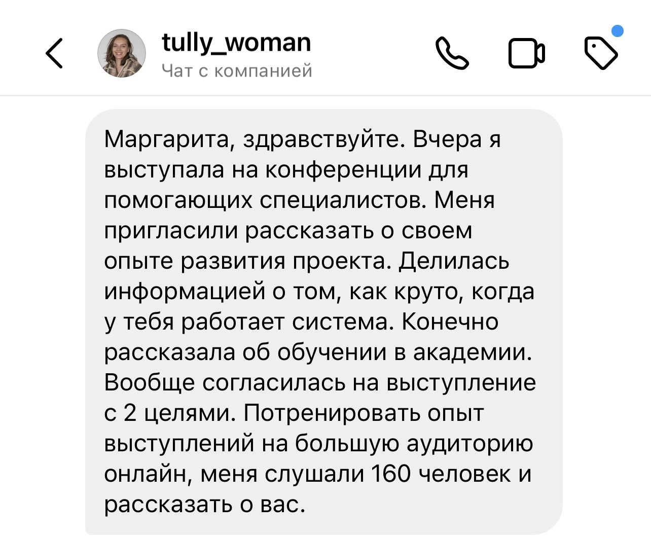В марте 2021 она пришла на программу “Системные продажи”: проработала портрет целевой аудитории, разработала продуктовую матрицу и сделала три пакета предложений, поняла как подсвечивать ценность своего продукта, подняла цену на услуги.